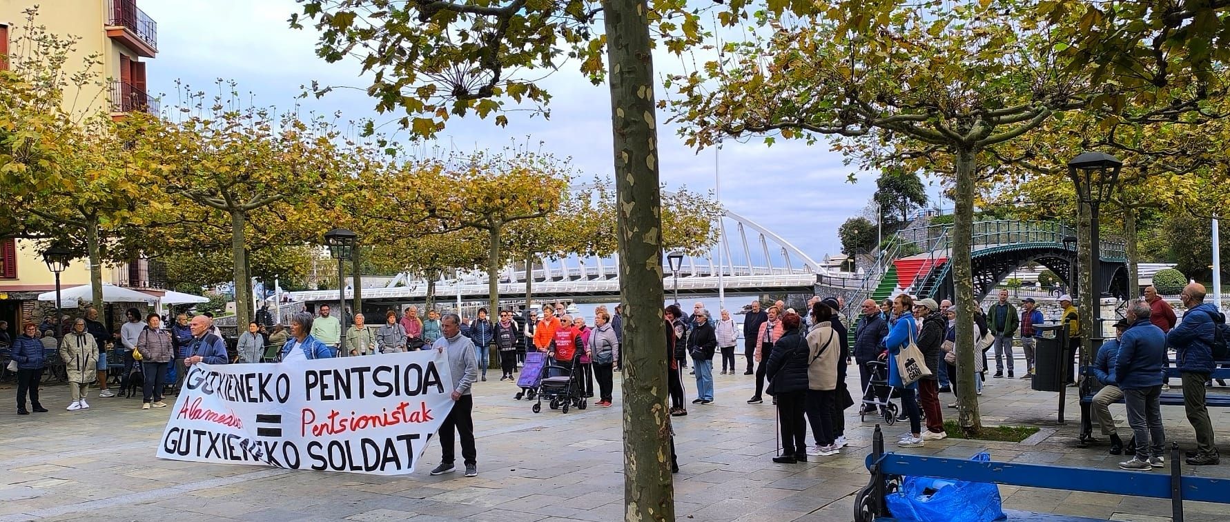 Gaur be 12xak puntun batu diz Alamedan herriko PENTSIONISTAK ta zabaldu dabe euran pankarti, GUTXIENEKO PENTSIOA/GUTXIENEKO SOLDATA; 108 lagun alkartu diz pankartin atzin eta eurakin batea Udal ordezkari bi be egon diz (EHBilduko bi zinegotzi).