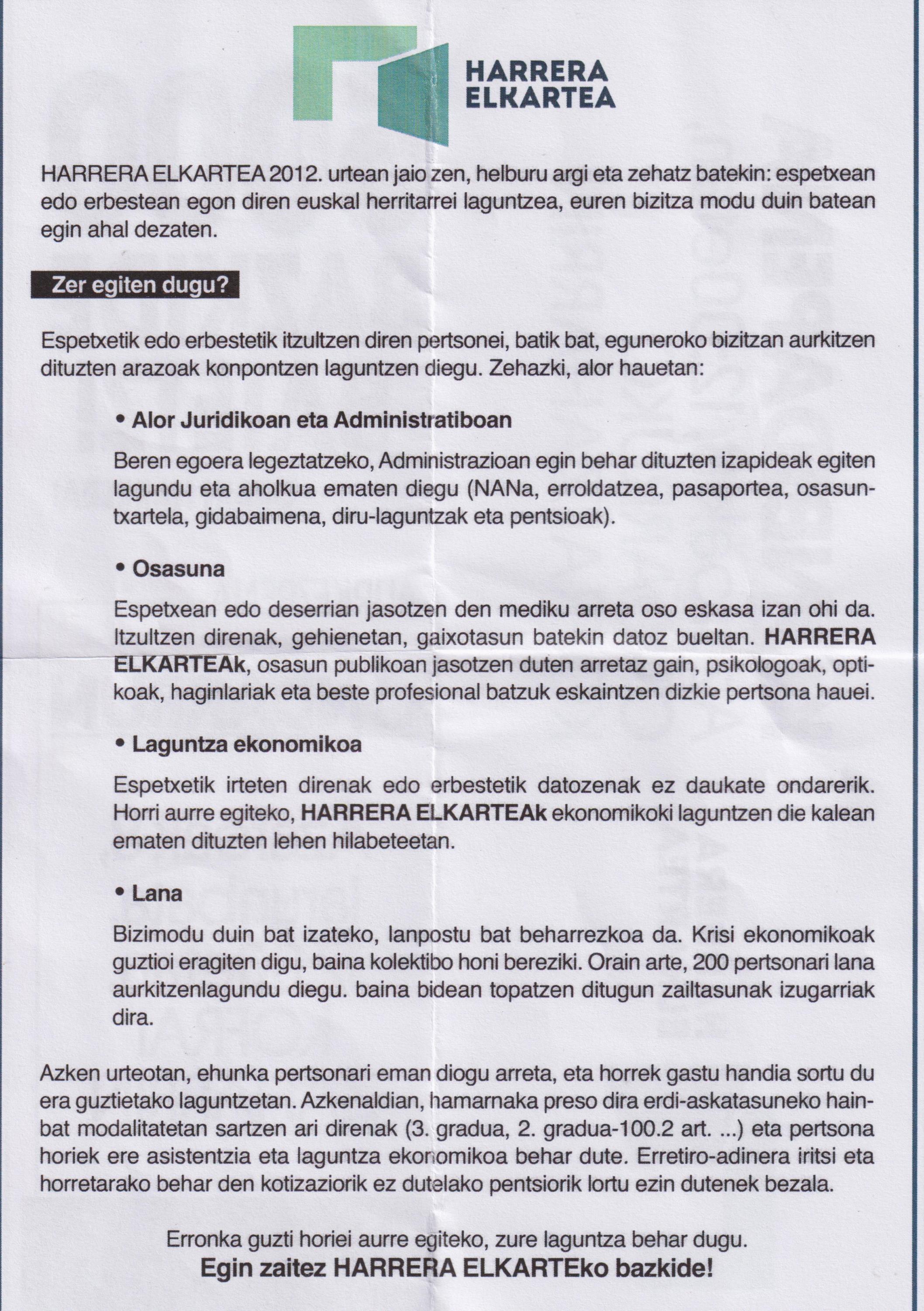 Gure PRESUn eta IHESLAXAn “behartasunai” eta “aterrizajiai “aurre etxeko ta laguntzeko tresna beharrezku ta egokixe da HARRERA ELKARTI. Danon artin erreza engou, hurreatu entzutea!