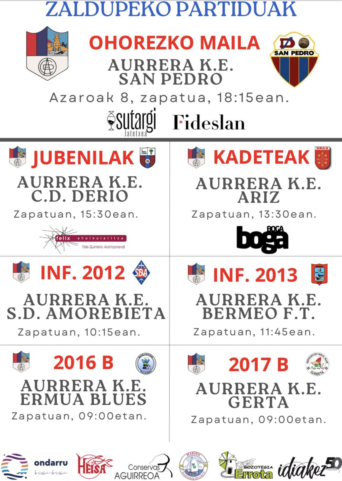 Azpixan ikusiko dozuenak diz asteburo honetan Aurrerako talde desbardiñak jokatuko dotxuen partiduk, egun eta ordutegixak, Zaldupe udal futbol zelaxan. Aupa AURRERA tra ka tra!
