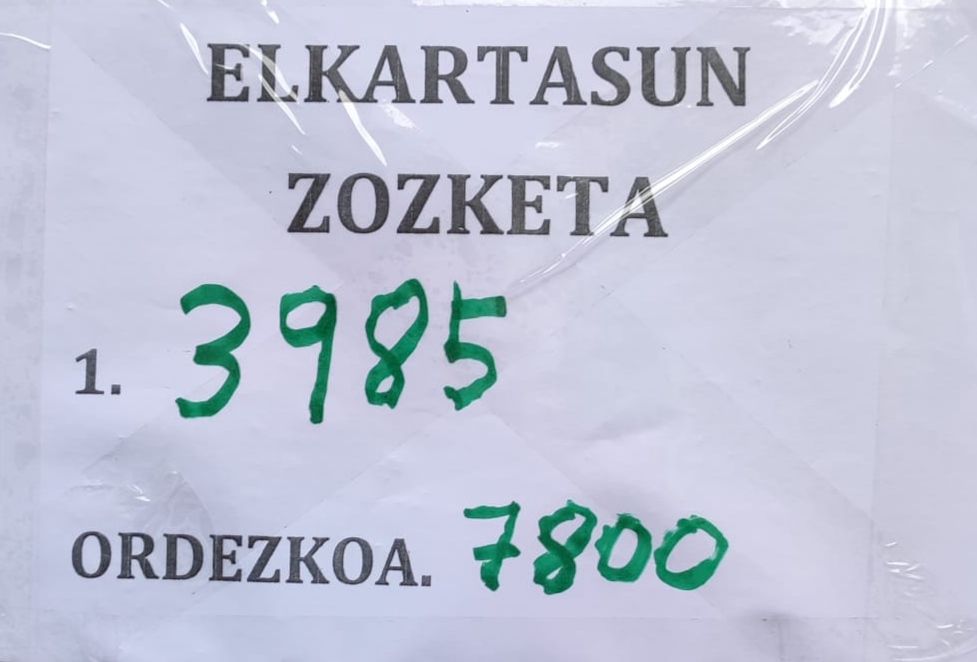 Gaur goxetik egon diz kalekutzeko eskillaretan ELKARTASUN otzara eder baten boletuk saltzen. Ze helburuaz galdetukozue batek baño gexauak ? Herrixan falta douzenai laguntza ekonomiku eskeintzeko. Ta azpixan agertuko dan zenbakixe ixan da irabazli. Zoixonak!