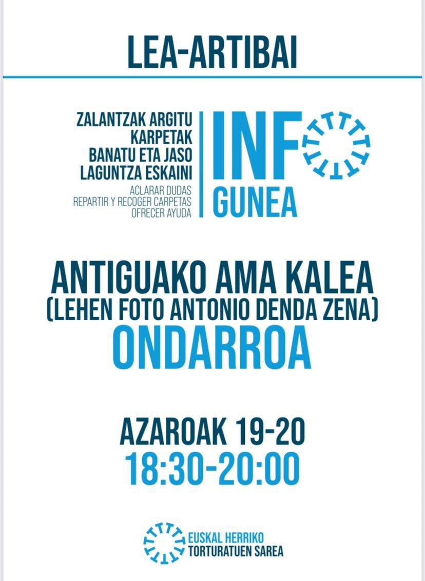 Aurreko astin herrixan TORTURI jasan ixan ben hainbat lagun batu zin Kofrai Zaharrin gai honetaz berba etxeko eta batzar horren ondorixoz Info guni zabaltzi erabaki dabe hainbat helburuaz, Zalantzak argitxu, bakotxan testigantzak jaso karpetetan eta laguntzi eskeini. Dei berezixe etxetze, edozein garaxetan eta edozein gorputz polizialengandik (guardia zibilak ixan, polízia nazionalak ixan edo ertzañak ixan) TORTURATU ixan dan norbait ezautzen badozu, zabaldutzaxun mezu hau. Azarun 19 eta 20xan arratsaldeko 6:30etatik 8reta egongo diz bertan (lenako Foto Antonioko lokalin, gaur eguneko Yaalah). Pasataku eztalako ahaztu bir! osteabe ez errepikatzeko eta bide batez miñak sendatzeko