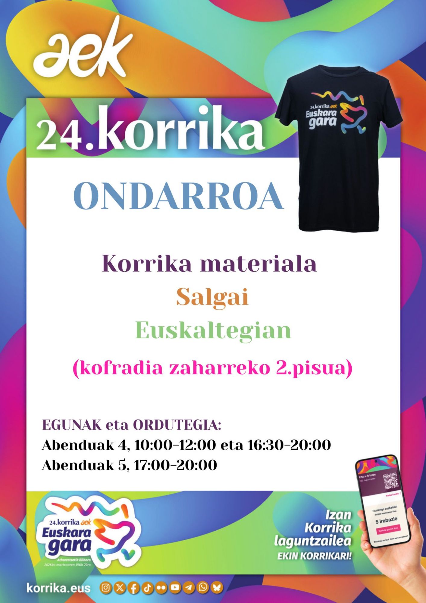 Datorren urtin KORRIKA urti tokaten da ta motorrak berotzen hasitxe daz. Ondarrun hasteko, Kofrai Zaharreko 2.solairun KORRIKA mteixala saltzen ipiniko dabe AEKo euskaltegixan, Abendun 4an eta 5in azpixan dakazuen ordutegixetan. Eskuratu lelengotik eta ez ixan popa ustel!