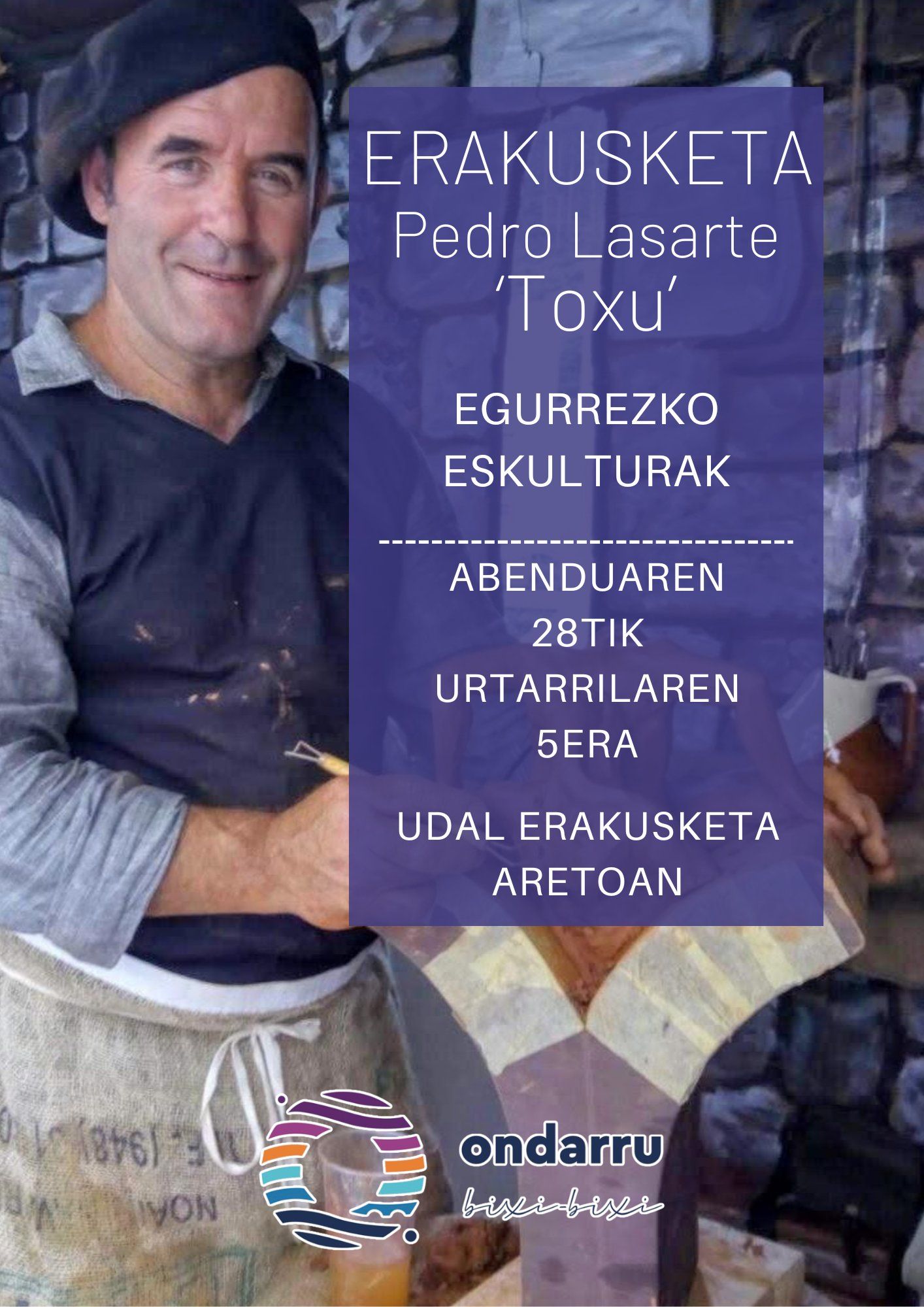 Abendun 28txik Urtarrilan 5ea PEDRO LASARTE IPARRAGIRREn “TOXU” egurrezko eskultura erakusketi eukikou ikusgai Udal Erakusketa aretun. Herriko artisaun lanan barri agerixan ipintxeko beste aukera bat.