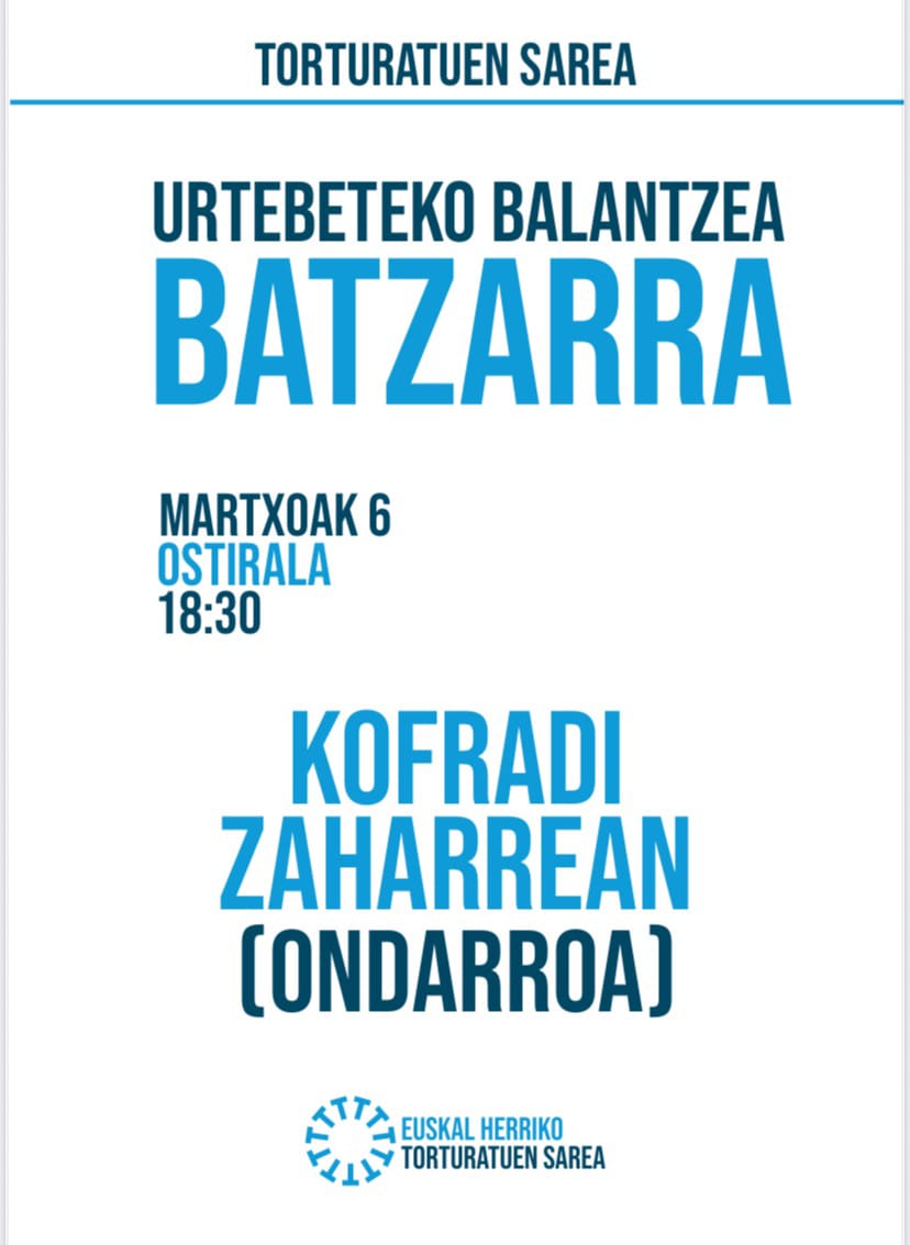 Ongo baixako (Martxoak 6) arratsaldin 6:30xetan TORTURATUk ixan dizen Sarin batzarra eingo da Kofrai Zaharrin, urtebeteko balantzi etxeko.