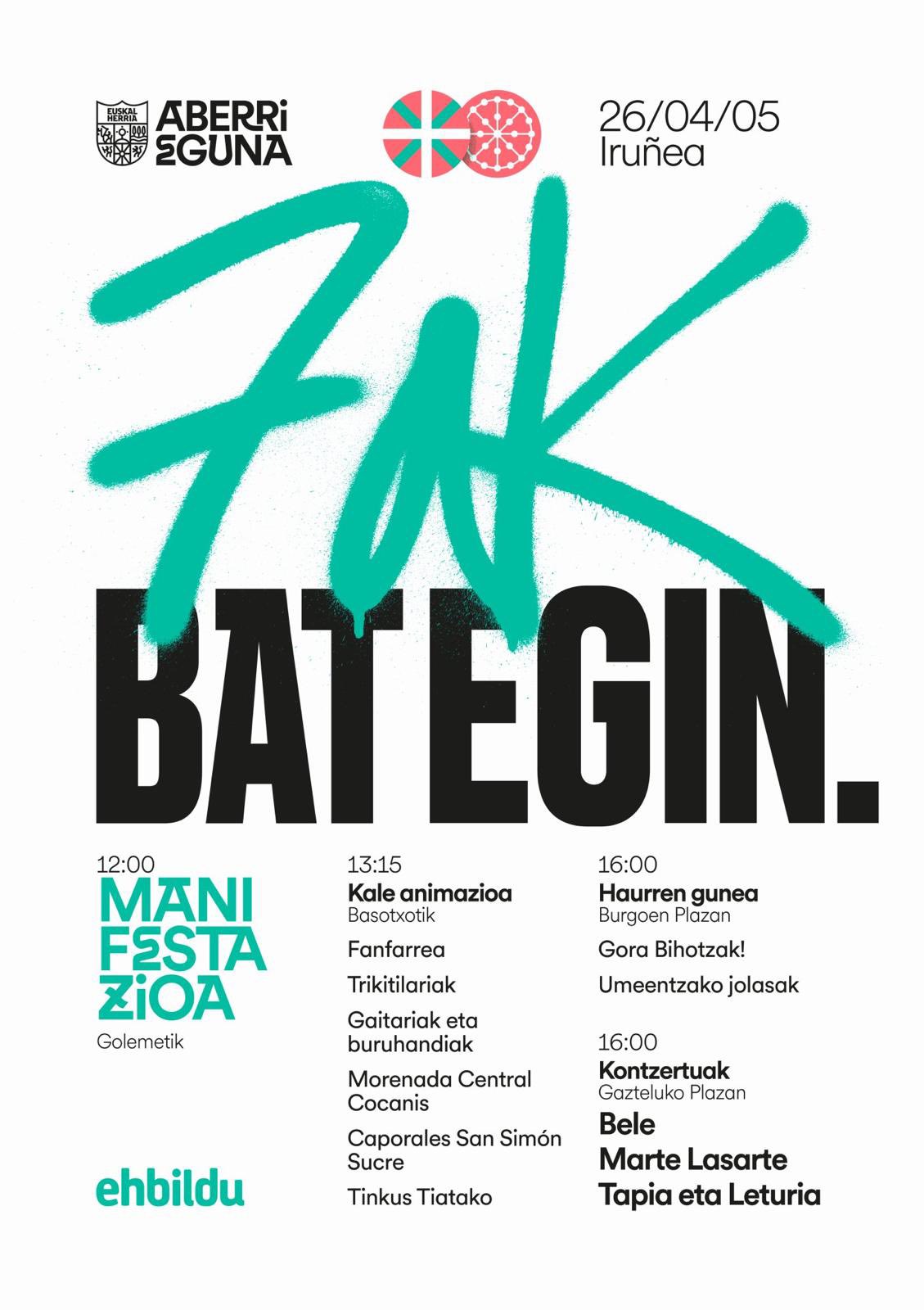 Apirilak 5in ABERRI EGUNE ospatukou ezkerreko Independentistok IRUÑAko kalitan egun osoko egitarauaz. Gure NAZIÑOI BAKARRA EUSKAL HERRIXE dala lau haxita zabaltzeko. IRUÑA juteko autobuse antolatu dou herritxik eta nahi dabenak jun ixenak ALAI edo ANAITASUNA tabernetan emon bihir diz.