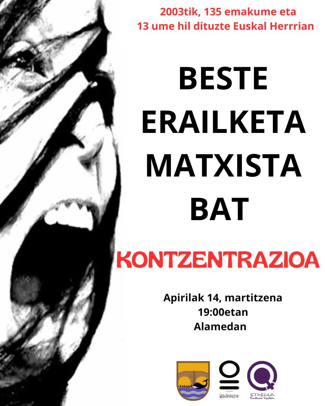IRUÑAn asteburun gertatutako erailketa matxisti salatzeko, elkarretaratze bat eingo da bixar (A-14) Alamedan udalak deitxute arratsaldeko 7retan. NAHIKURE!