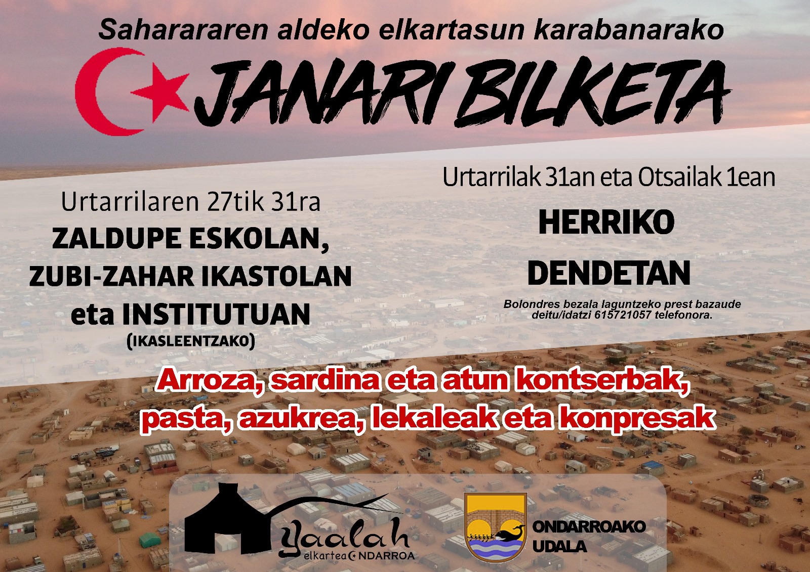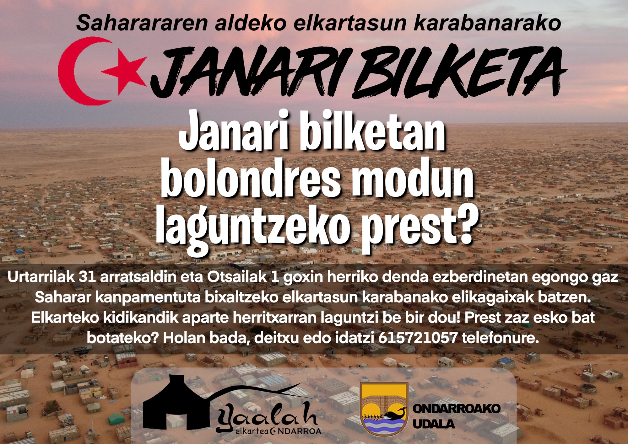 Urtero modun , saharar herrixan aldeko Euskal Herriko elkarte asko elkartasun karabani antolatzen dabiz. Saharar errefuxiatun kanpamentutan dazen elikadura gabezixak lehuntzeko eta batez be herrixan arteko elkartasun keinu erraldoi bat bihurtzen da ekimen hau.