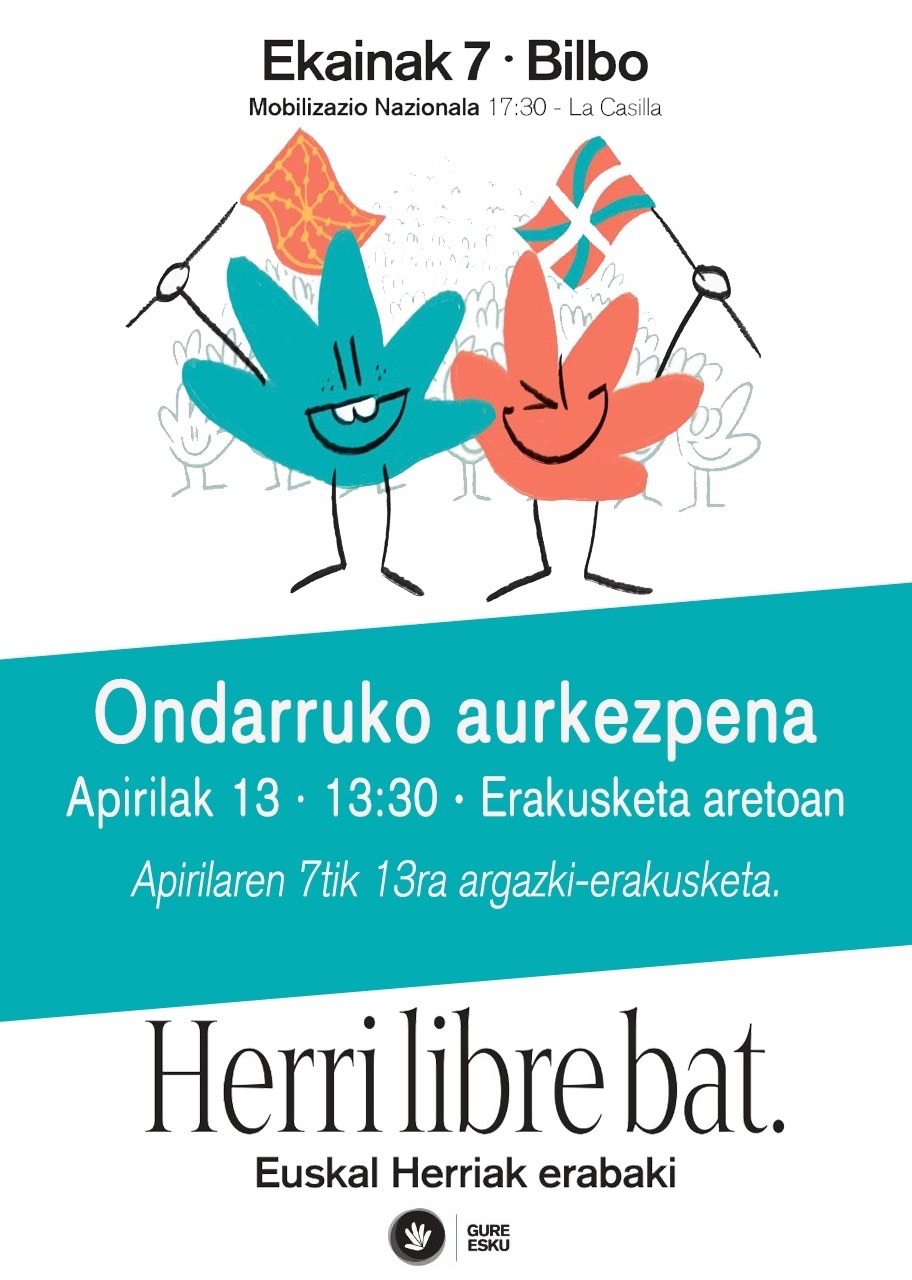 Gure Esku erabakitxeko eskubidin aldeko mugimenduk, esko artin dabilen โHerri Libre Batโ dinamiki aurkeztuko dau Ondarrun Apirilan 13an 13:30etan Udal erakusketa aretun.