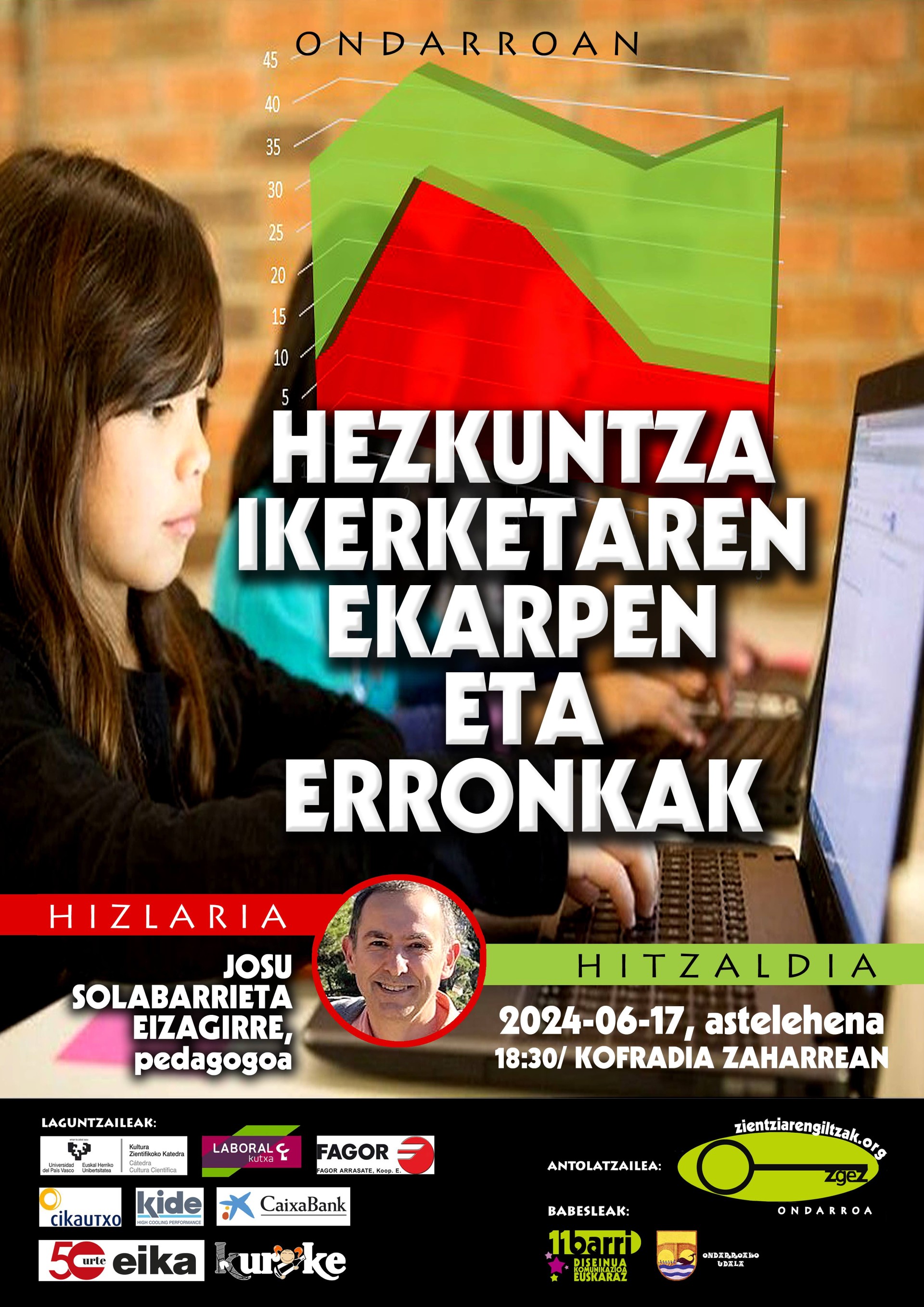 Datorren astelehenin (E-17) eukikou kurtso honetako Zientziaren Giltzak Elkartin atzanengoko hitzaldixe. Izenburo hau ipinitze: HEZKUNTZA IKERKETAREN EKARPEN ETA ERRONKAK! eta hizlari lez JOSU SOLABARRIETA EIZAGIRRE ( pedagogu) etorriko da. Gogoratu Kofrai Zaharrin ixango dala eta arratsaldeko 6:30tan hasiko dala. Gai interesgarrixe dala ereisten gasku eta danoi ikutu etxen doskulako hurreatu entzutea.