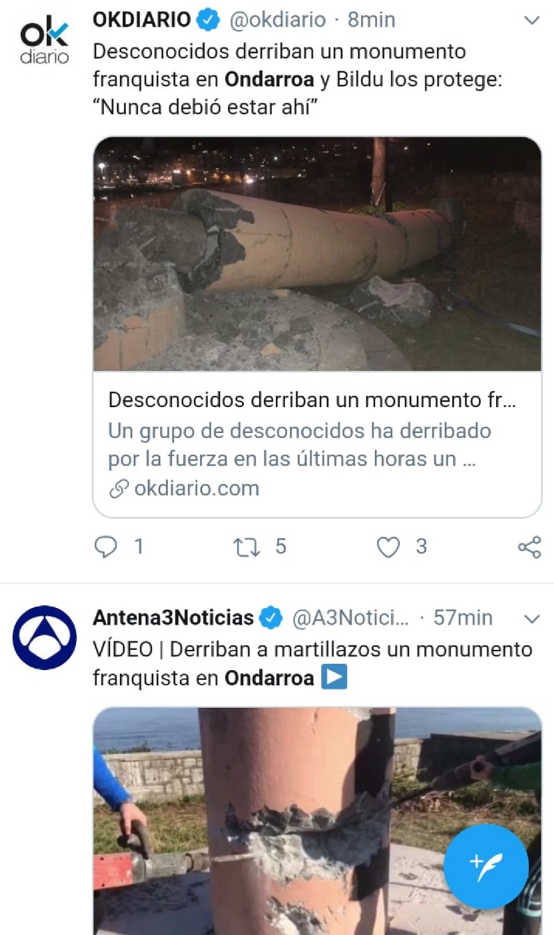 Gertaera hau ez zan oharkabin pasa. Hurrengo egunin hainbat komunikabide hurreatu zin monumentun hondarrak gelditzen zin tokire arte. Inguruko komunikabidik bai, baine estatu mailako medixo handixak be albistegixak zabaltzea aia zin albiste honeaz.