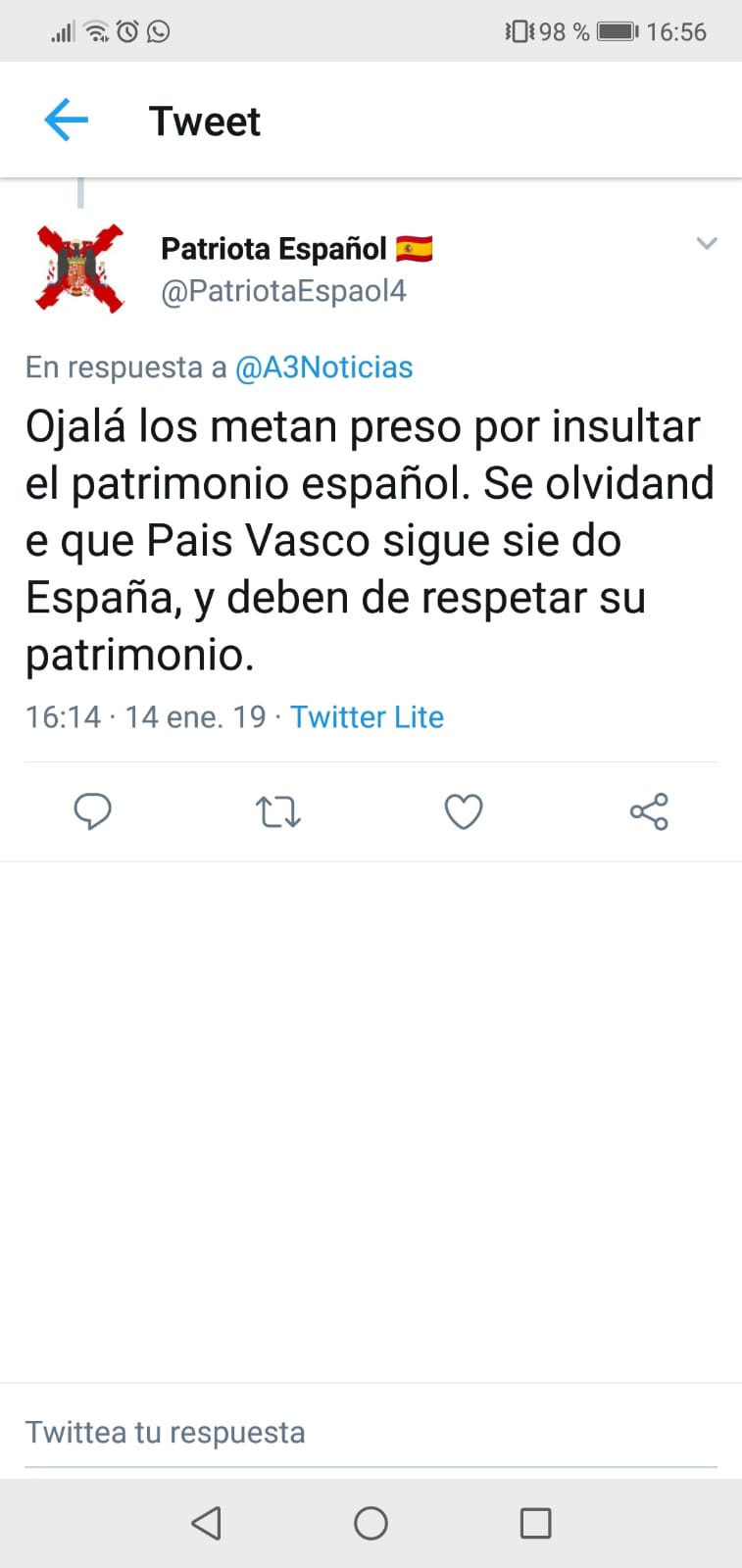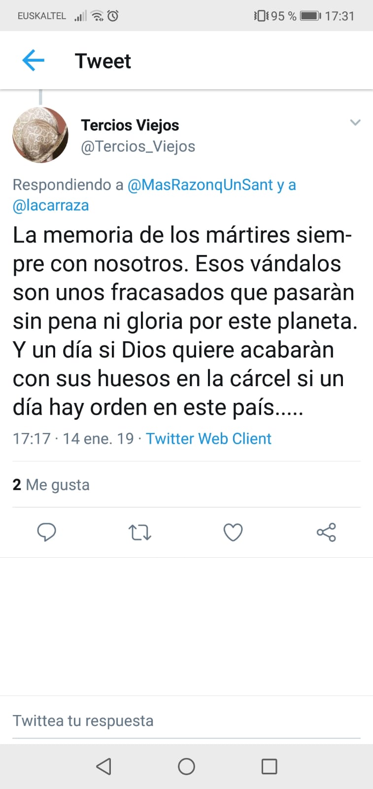 Gertaera honek pasa eta aste batzuta, “Abogados Cristianos” talde ultraeskuindar erreakzionaxuk, fiskaltzin aurrin salaketi ipini ban. Ustezko “sentimentu religiosun krontako erasu eta gorroto delito” modun kalifikata kurutzin eraisketa hau.