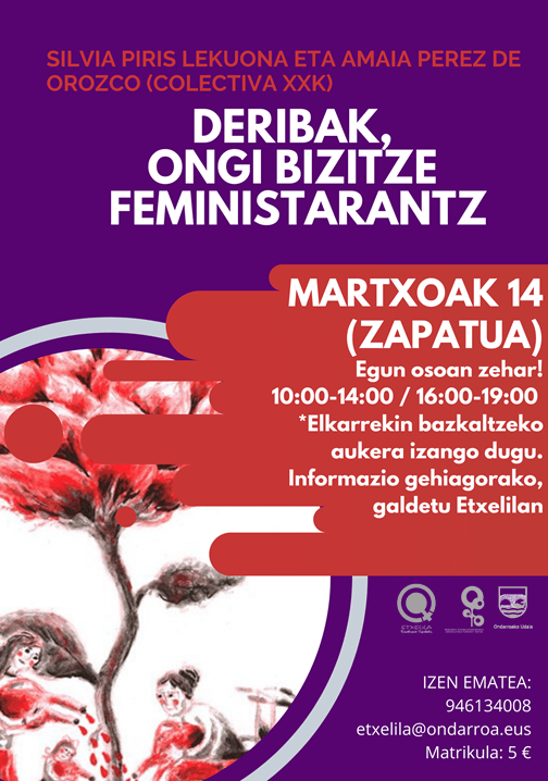 “Deribak, ongi bizitze feministarantz” ekonomia feministaren inguruko ikastaru, data barrixaz eta formatu desberdiñaz eukikou Etxelilan. Silvia Piris Lekuona eta Amaia Perez de Orozcok gidatute.