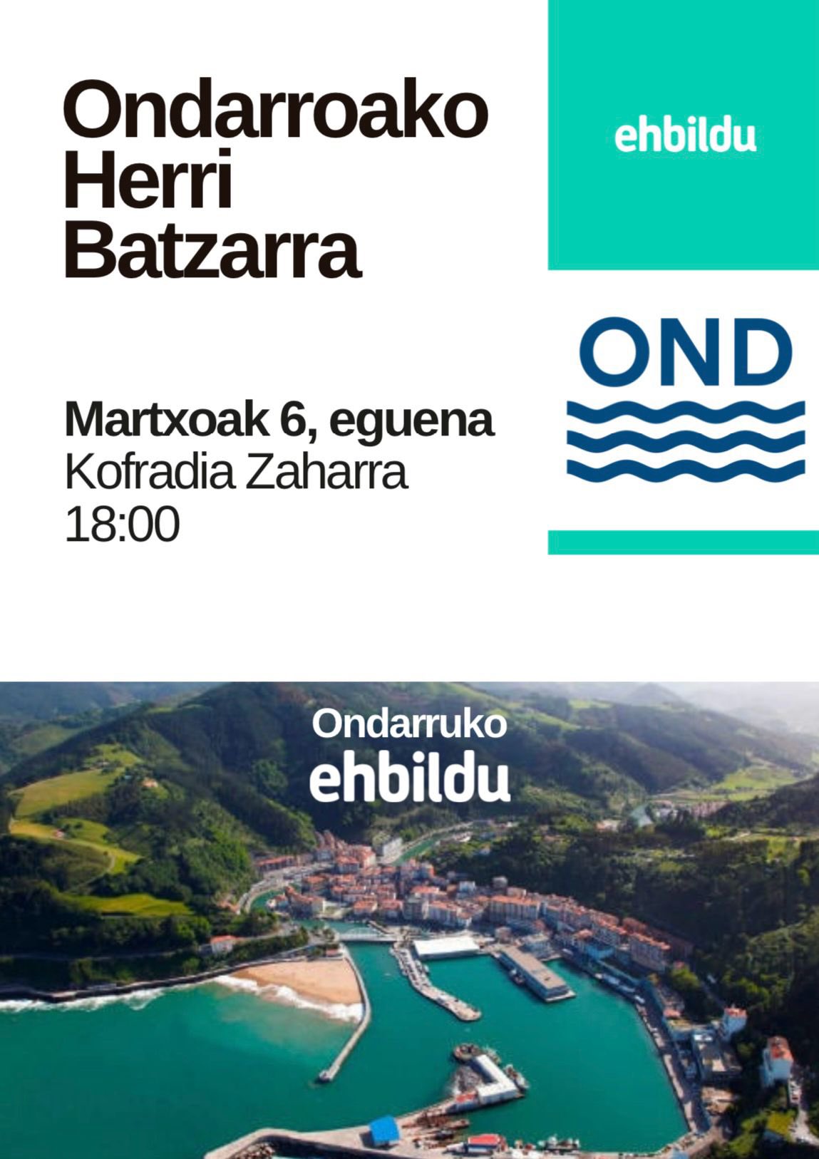 Gaur Martxoak 6, EH Bildun herri batzarra eingo da Kofrai Zaharreko 2.solairun arratsaldeko 6etatik aurrea. Hausnartu, ideiak elkartrukatu, norabidi ezagutu….Ondarru martxan ipini. Etorri zeube!