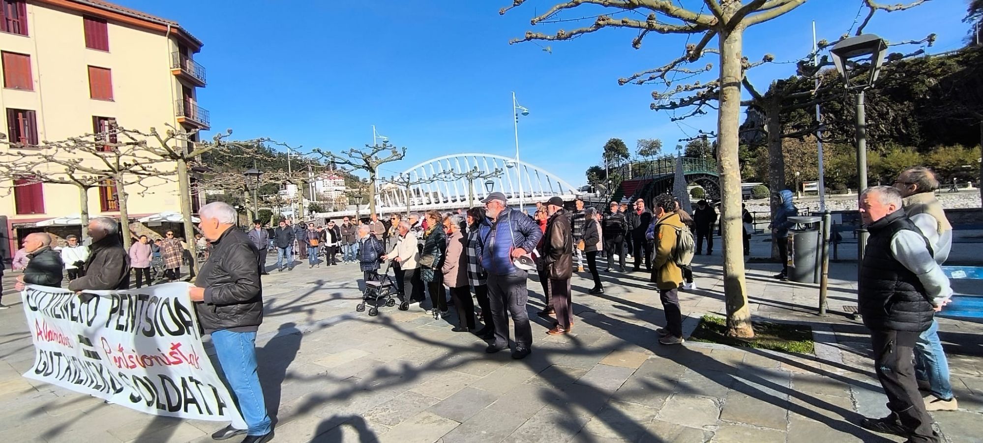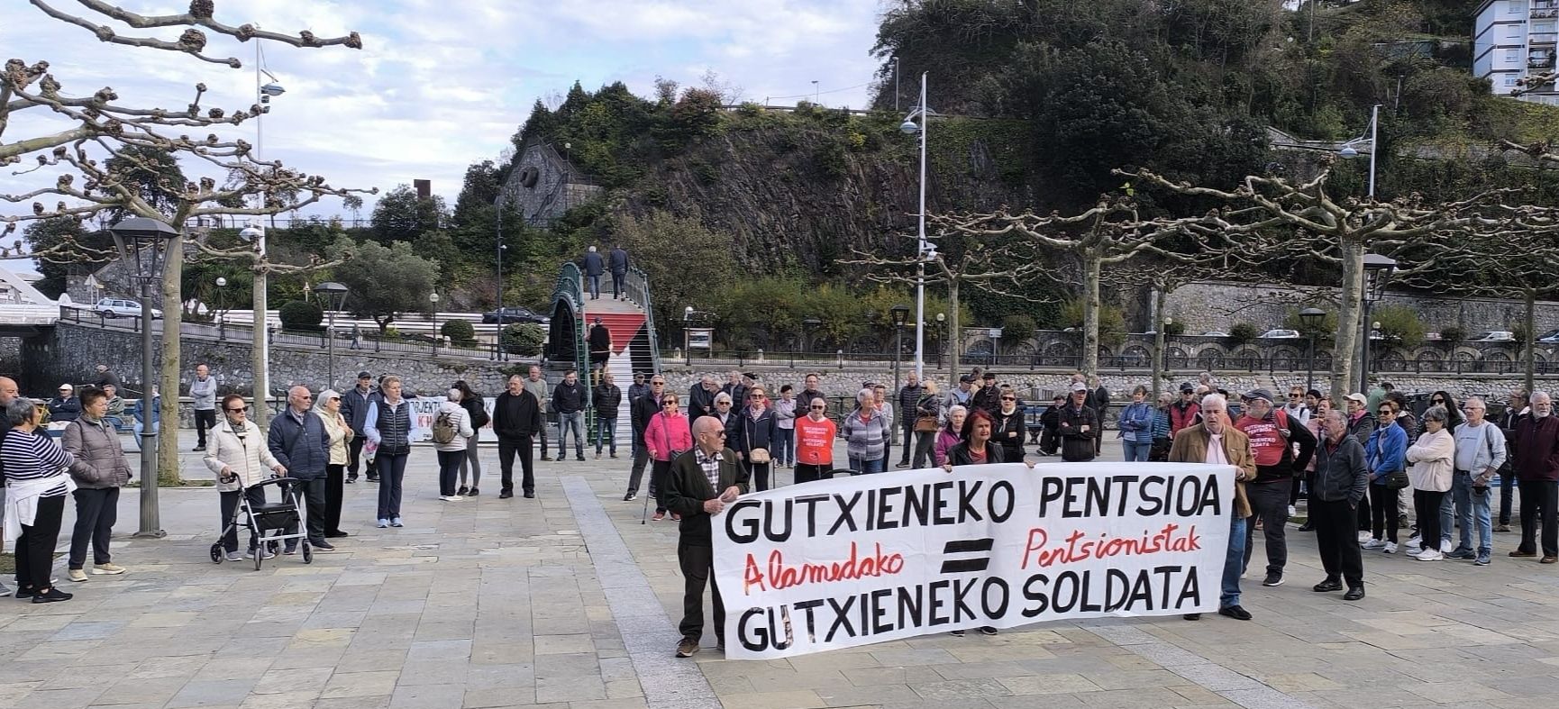 Gaur ixan dabe aurtengo azkanengoko elkarretaratzi herriko Pentsionistak ta beti lez 12xak puntun zabaldu dabe pankarti mezu argi ta garbixaz, GUTXIENEKO PENTSIÑOI= GUTXIENEKO SOLDATI parekatzeko eskatzen. 113 lagun (tartin Udaleko bi zinegotzi, EHBildukuk) batu dizela komentazku antolatzalletako batek eta 20 minutuz egon diz bertan.