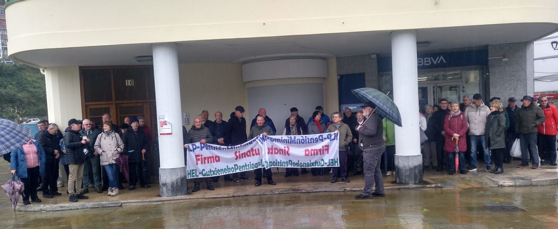 Egueldi mamu ta euri arriskuai aurre eiñaz gaur be Alamedan batu diz herriko PENTSIONISTAK. Pankarta atzin 117 lagun ipini diz, tartin jarduneko alkati eta EH Bilduko zinegotzi bat. 20 minutun egon diz bertan eta komenta dabe pasan eguenin Gasteizen eizan manifestaziñoin ingurun baloraziñoi baikorra eibela; ixan be, jende asko batu zan eta giro paregabi eukibela. Bertan, 145.142 siñadura aurkeztu zitxuezen GUTXIENEKO PENTSIÑOI=GUTXIENEKO SOLDATI parekatzi eskatzen. On peloti agintarixan teilatun da eta erantzunan zain geatzen diz pentsionistak.