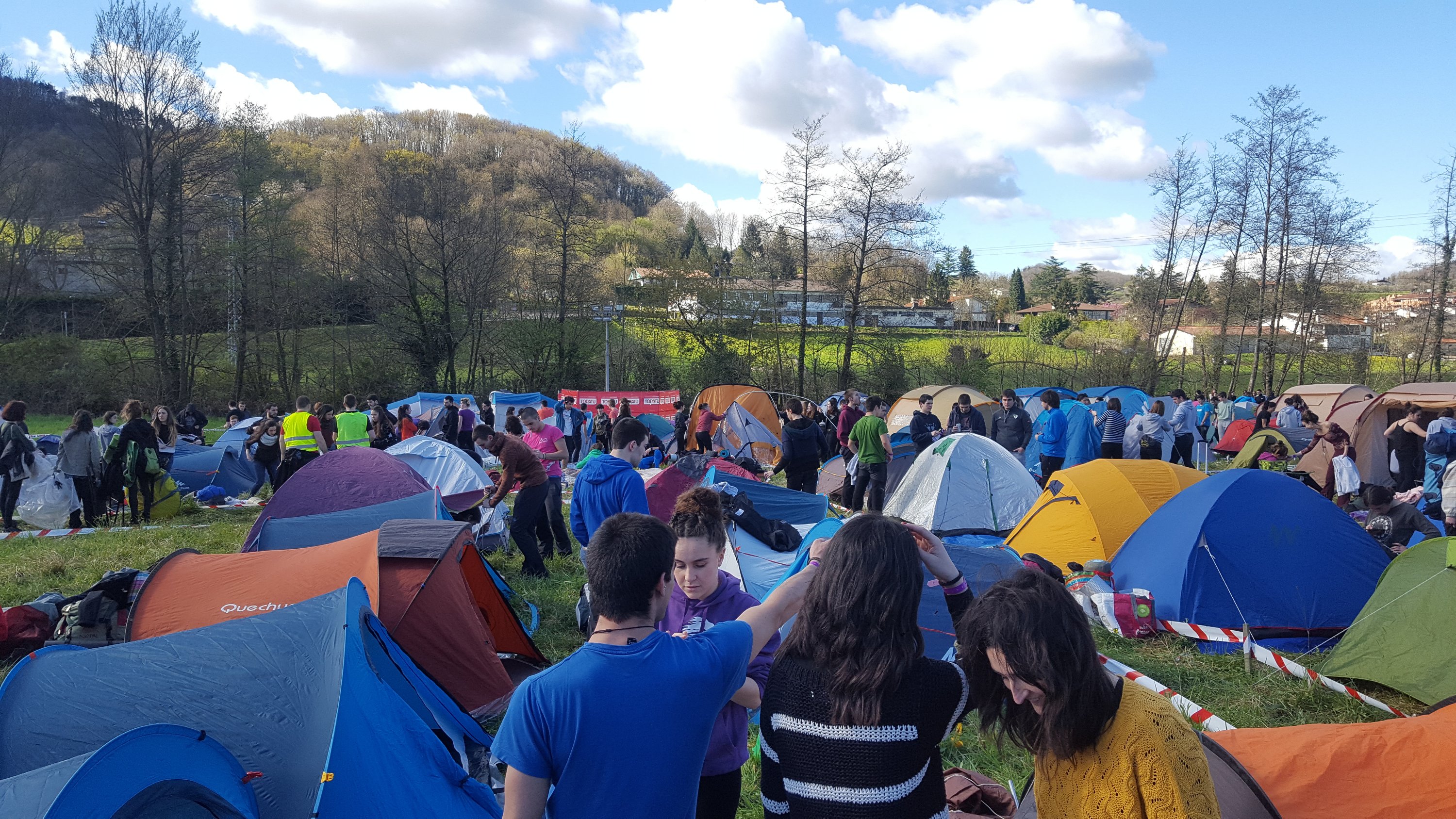 “Hamen ga Euskal Herriko nahibeste gazte, Ernai eta Aitzina antolakundik geutzako sortu daben asteburu ederra pasaten, atzo (baixaku) egueldixak lagundute egun ederra euki gendun, taierrak, hitzaldixak, ekitaldixak… Karpan turnu ein biharra be eukigendun. Gaur (zapatu) goxaldin haxi, eurixe, kanpiñak zatitxute… esnatu ga, baine eztiz nahiku ixango gu gelditzeko!”