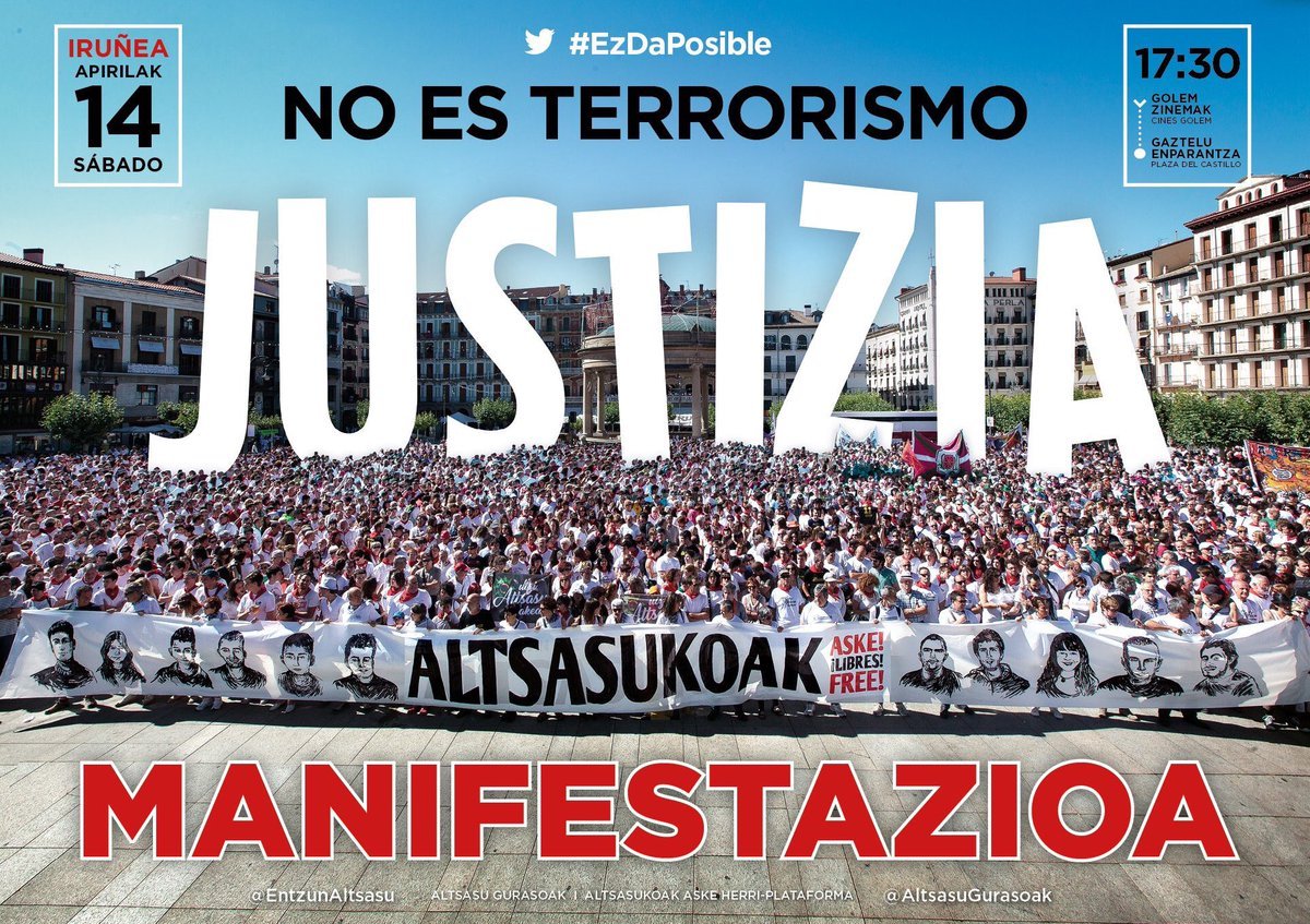 Apirilak 14 (zapatu) Altsasuko montaje polizial ta juridikun kontra eta auziperatun alde, manifestaziñoi egongo da ,17:30xetan Iruñako Golem zinemetatik!