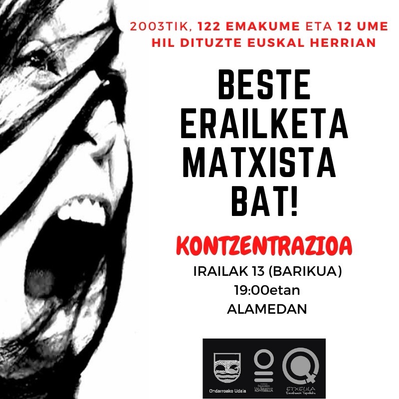 Udalak eta Ondarruko Emakumin Udal Berdintxasun Kontseiluk konzentraziñoi batea deitxu dau gaur arratsaldeako hau salatzeko.