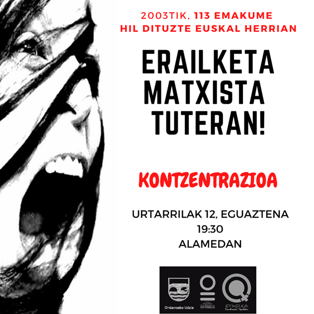 Azarun 25 in (baixaku) konzentraziñoi egongo da Alamedan arratsaldeko 7 retan Andrabanda Feministin laguntziaz, Ondarruko Emakumin kontseiluk antolatute.