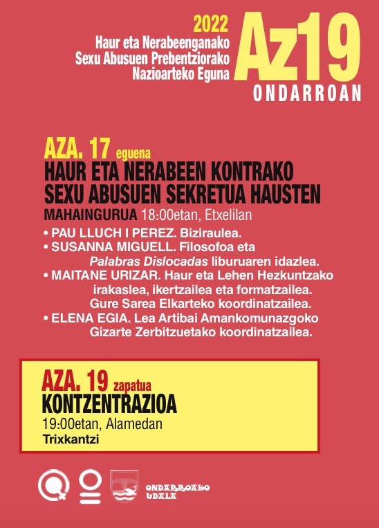 Gai honen ingurun hainbat ekimen eingo diz herrixan. Hasteko, Azaroan 17 xan (eguena) mahai inguru bat eingo da Etxelilan arratsaldeko 6 retan, bertan hainbat adituk parte hartuko dabe. Horretaz gain Azaroak 19 (zapatu) konzentri eingo da Alamedan arratsaldeko 7 retan, TRIXKANTZIk antolatute. Danon arduri dalako, hurretau eingo dizen ekintzeta!