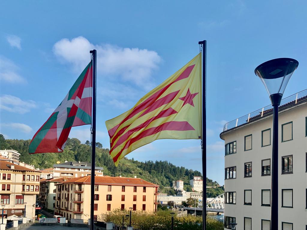 Gaur katalanan egun handixe da, euran Aberri egune ospatzen dabelako ta zelan ez, guk bat etxen dou euran nahixakin hori dala ta Ondarruko udaleko mastetan geure bi naziñoin ikurrak daz iseitxe gaur, internazionalismu ulertzeko gure eri dalako. Dos pobles, la mateixa lluita!