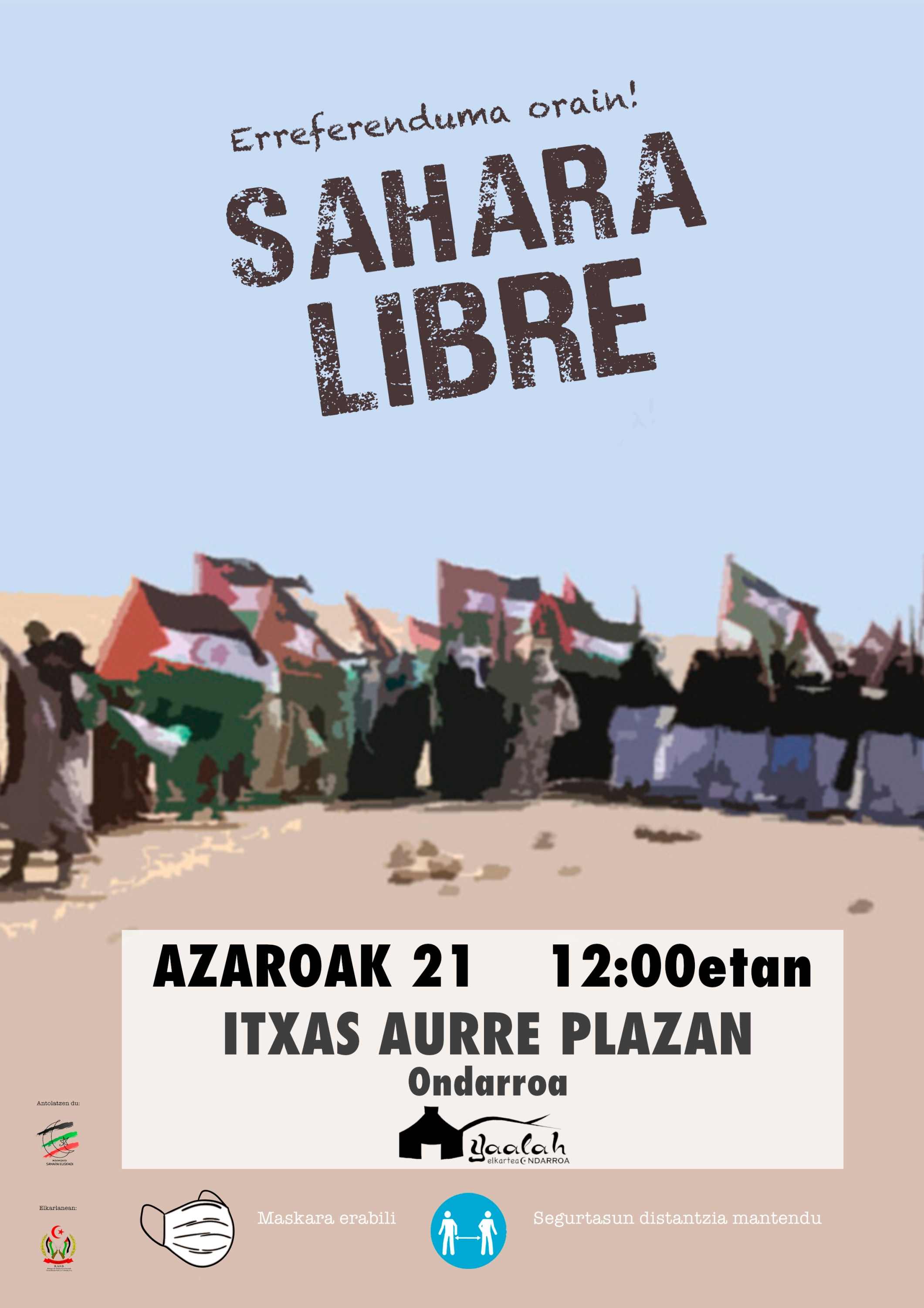 Sahararrei gure elkartasuna adierazteko eta Mendebaldeko Sahararen askatasuna aldarrikatzeko dei egiten dugu Ondarroako Yaalah elkartetik antolatu dugun kontzentrazioan parte hartzera.