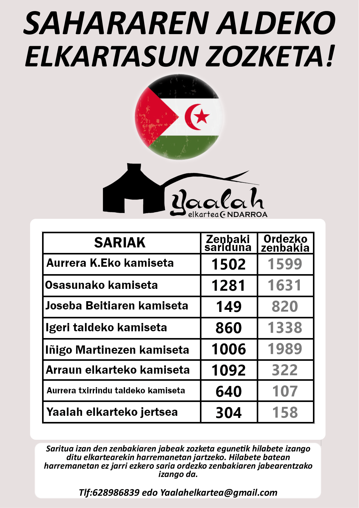 Honen harire eta herri sahararrai elkartasune adierazteko, ondarruko YAALAH elkartik KONTZENTRAZIÑOI deitxu dau: