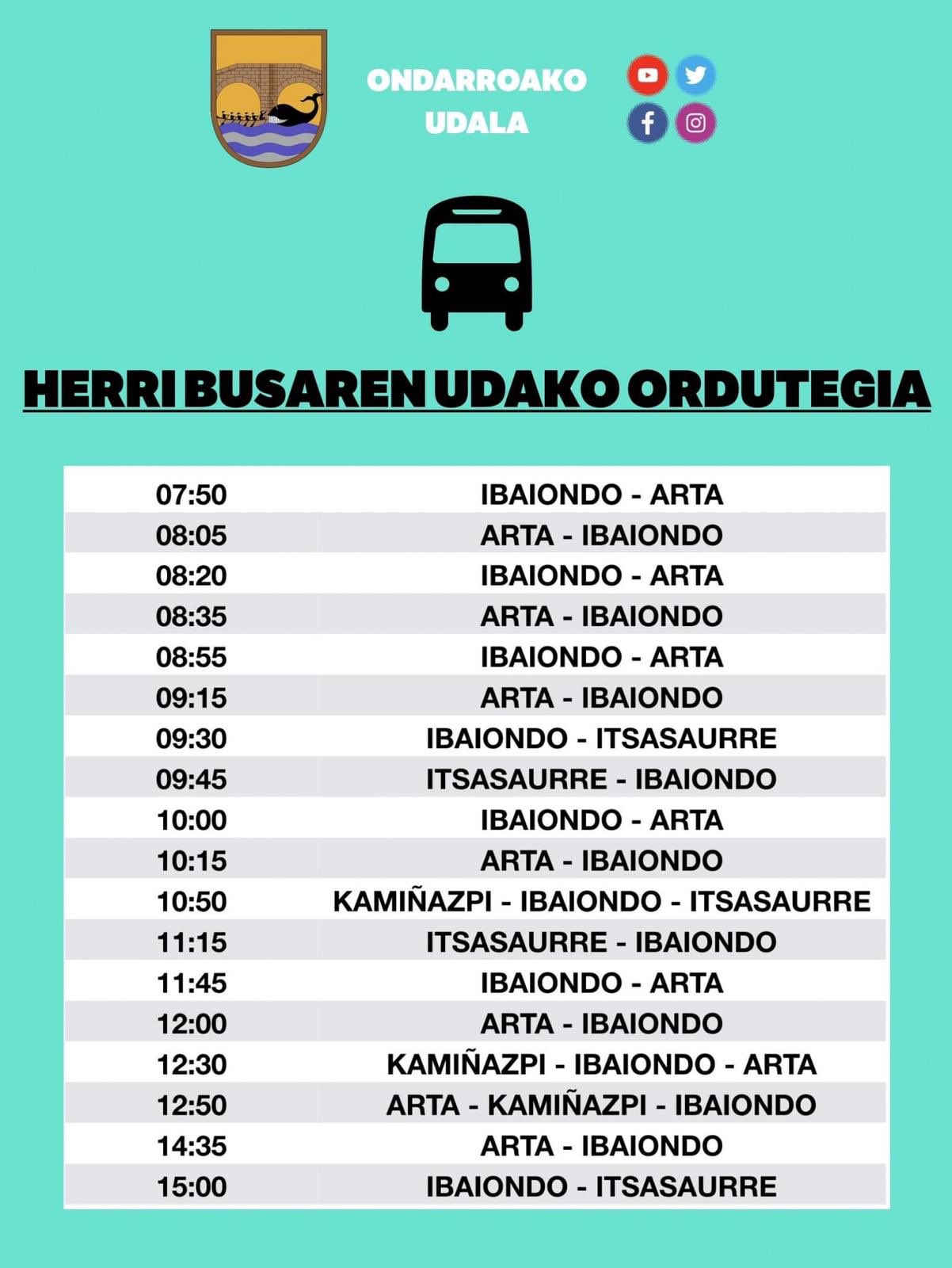 Gaurtik aurrea HERRIBUSak udako ordutegixe eukiko dau. Gogoratu 13:30etik aurrea Alde Zaharra oinezkuntzako ixango dala, beraz, 15:00etako bidaia kanpotik eingo dau Herri Busak. Azpixan dakazue udan tzir eukiko daben ordutegixe