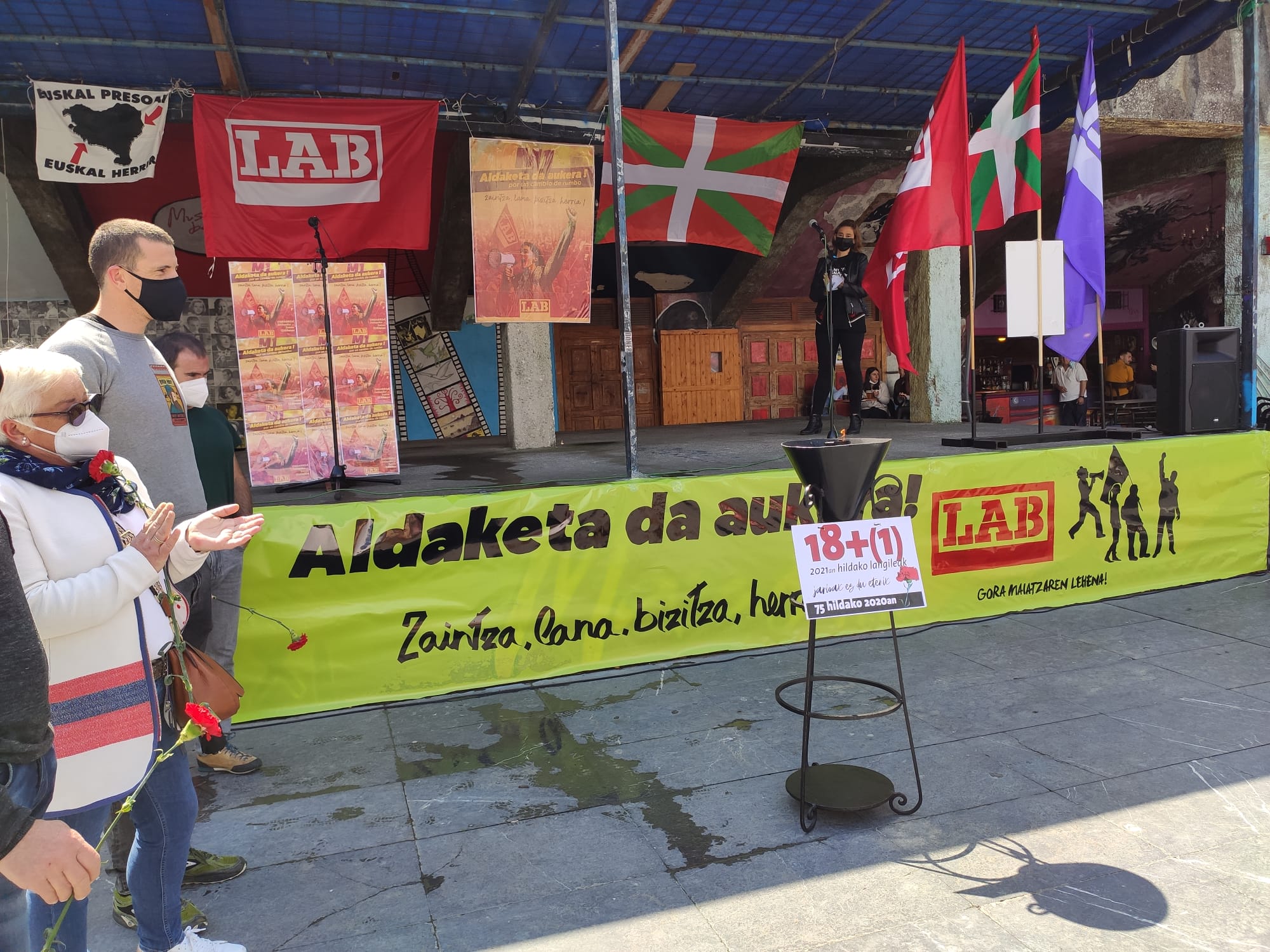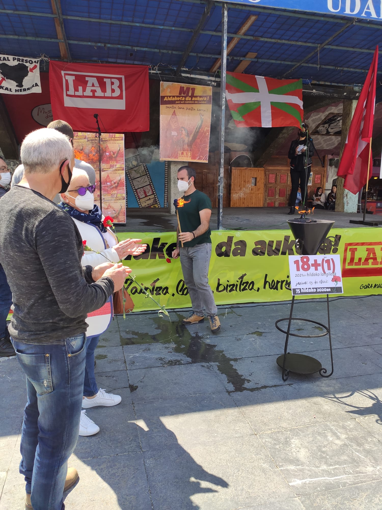 Ekitaldi bateaz emon gako amaieri manifestaziñoiai eta lanin hilddako biharginak tarte berezixe euki dabe ekitaldixan. 18langile diz 2021in prekariedadin erruz Euskal Herrixan bixitxi galdu dabenak. Euran omenez, lora eskeintzi eta agurre eindde. 2016an izotz fabrikan hilddako langilin senidik bistu dabe pebeteru.