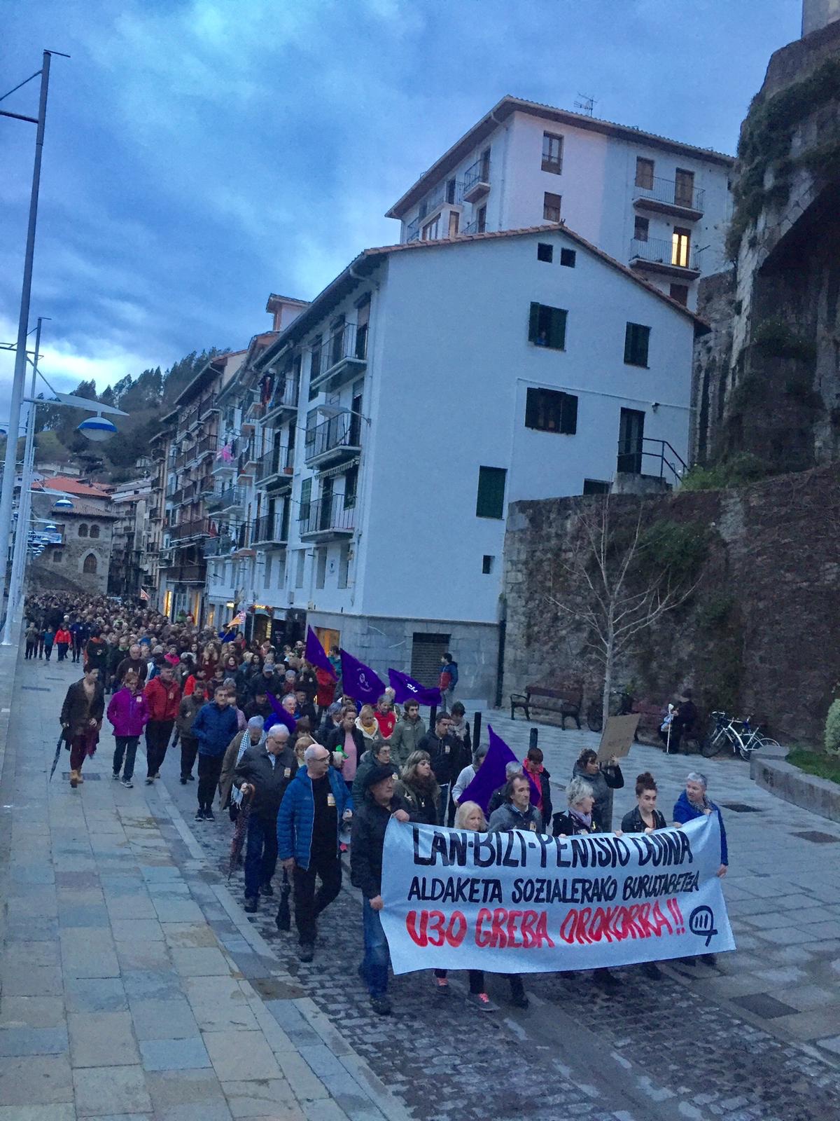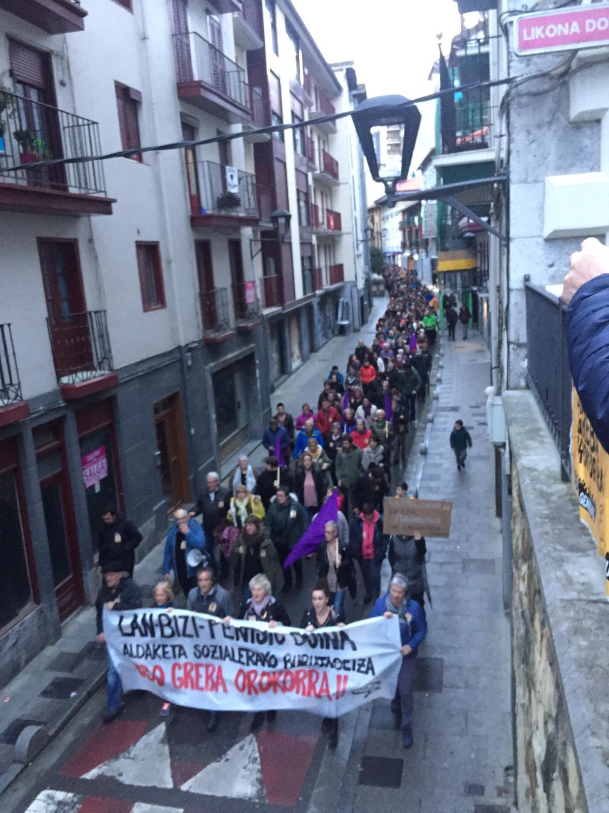 9:30ak aldea urten dabe hainbat herritxarrek Bilboko mobilizaziñoitxan parte hartzeko, irudi ederra emon dau manifestaziñoik. Milaka ta milaka lagunek (50.000 mille) bat einddou lema bakarraz, “Lan pentsiñoi eta bixi duinak!”
