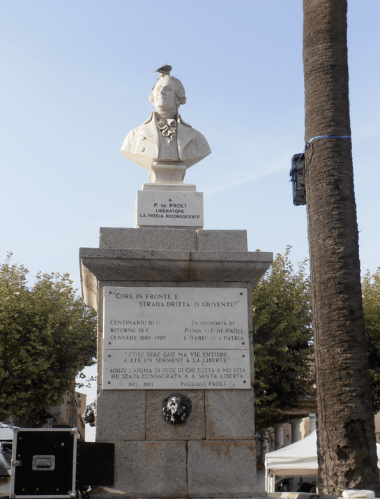 Pasquale Paoli, neure idolo barrixe da, honei monumentu etxi herrixan proposatzen dot. Napolesen ikasixe, familixa oneku, ilustrau bat zan. Corsican independentzixin aldeku, eta Corsica independienteko presidente (1755-1769), frantsesak isli hartu arte. Europako lehenengoko konstituzinoi demokratiku idatziban islintzako. Estankatako lagutan malaria euala, da berak diseña ban drenajik. Lehenengo unibersidadi Corsican sortu ban, exiliata egon zan Inglaterran da reboluziñoi frantseza da gero gobernadore ipini ben islan, ta barriro independentzixi lortzen ahaleginddu zan, baine tropa frantsesak irabazi eiben. Isula Rossa hirixe sortuban genobesai konpetentzixi etxeko, eta gaur egun bertan topa leike berai dedikatako estatua bakarra.