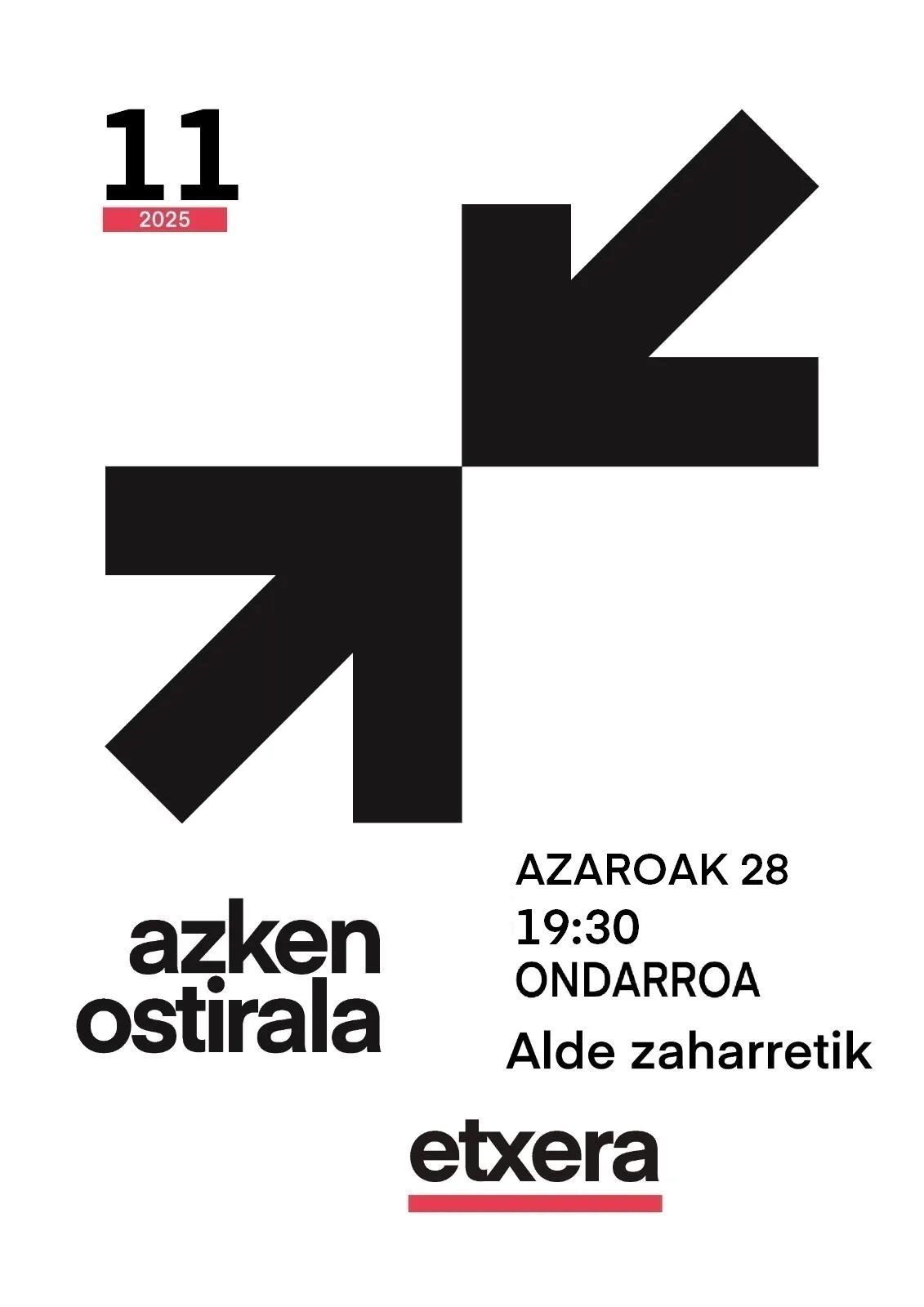Azaruko azkanengoko baixaku be alla da eta hilleko azkan baixako guztixetan etxen douen lez PRESO ta IHESLAXAK ETXEA! enkarteladi eingou herrixan ETXERAT elkartik antolatute (Senideak). Hitzordu arratsaldeko 7:30xetan da ipinitxe ta Alde Zaharretik urtengo dau. Gañea enkartelada aurretik mahaixe ipiniko dabe ETXERATen 2026ko egutegixak saltzen. Anima erosten!