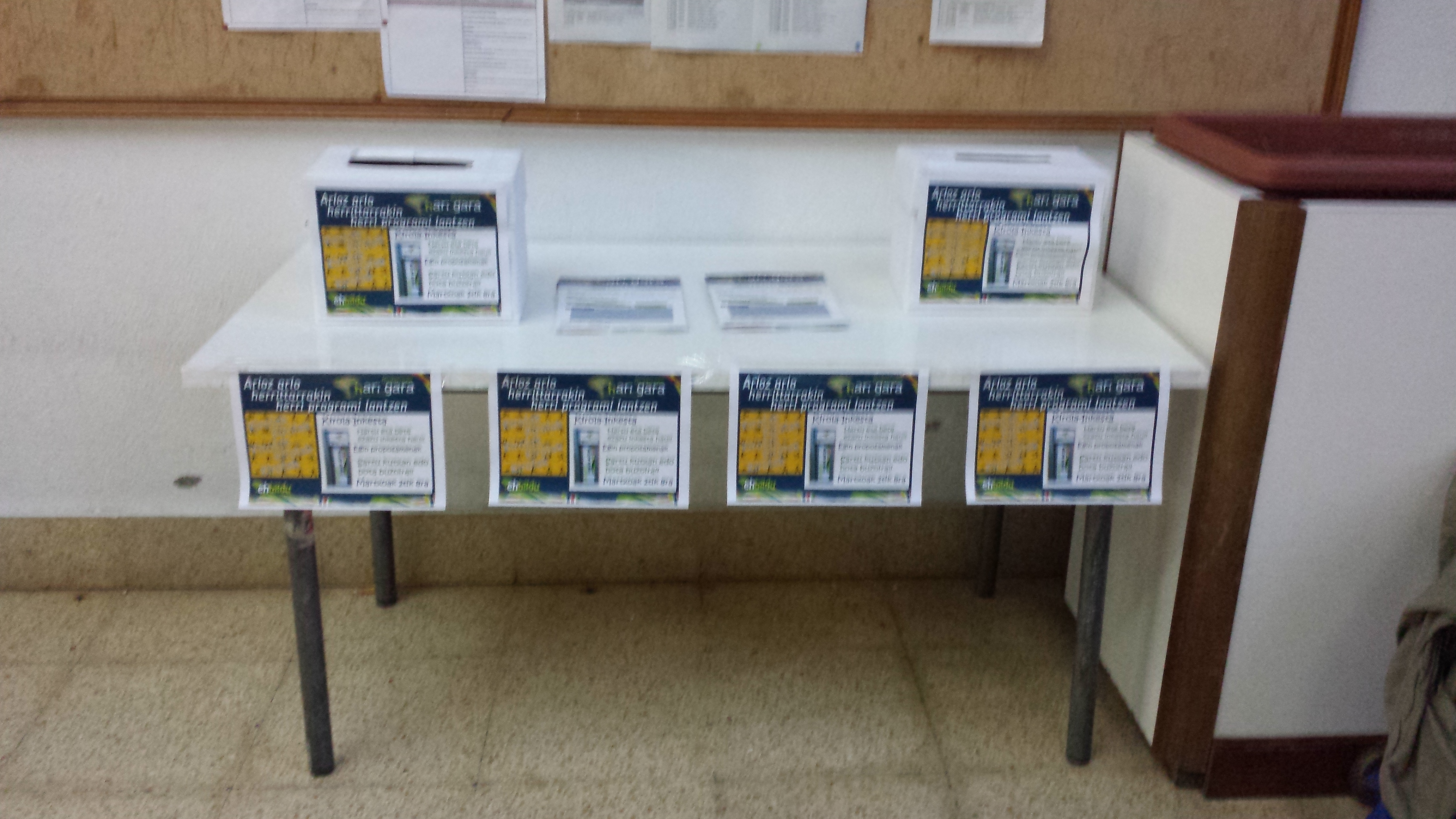 Kiroldegiko atarixan jarri dan mahai baten dakazuz inkestak, hartu, bete, eta bertako kutxan laga.