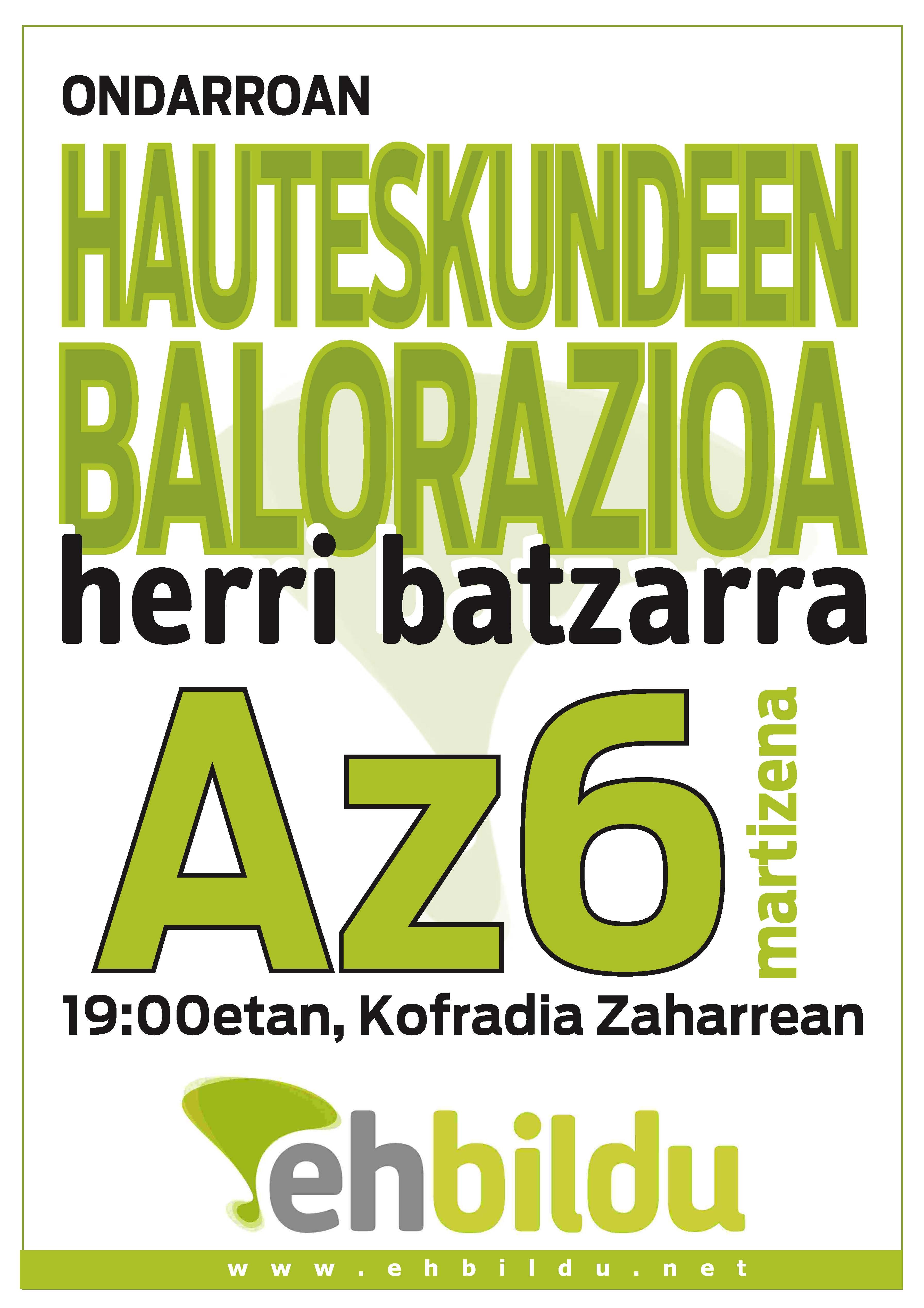Hauteskundin balorazinoi egingo da herri batzarrin, 19:00etan, Kofradi Zaharrin. Galdera-erantzunan tarti be zabalduko da amaieran, ohiku den modure.