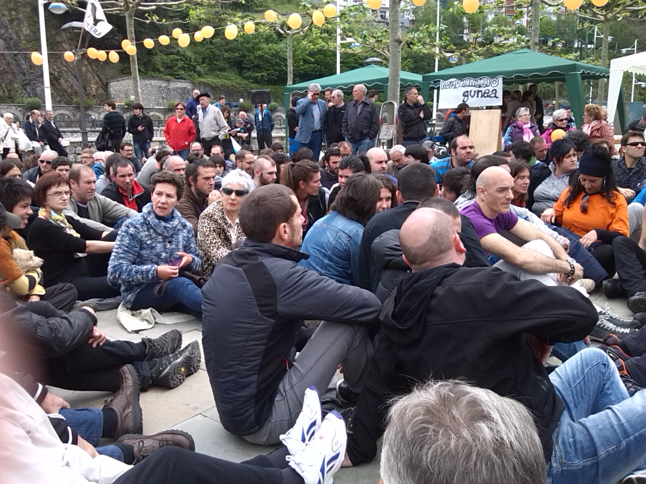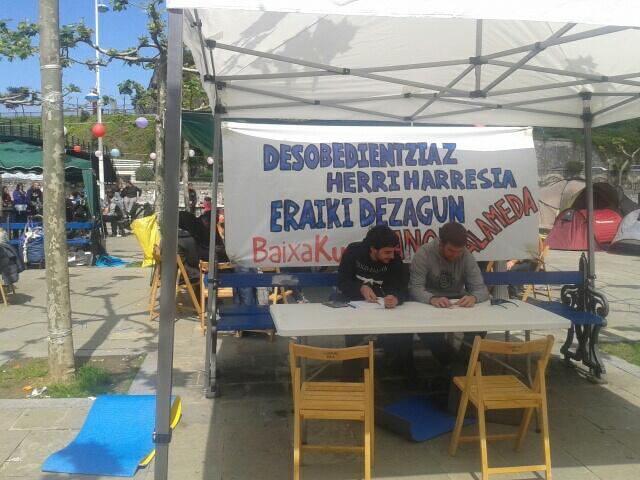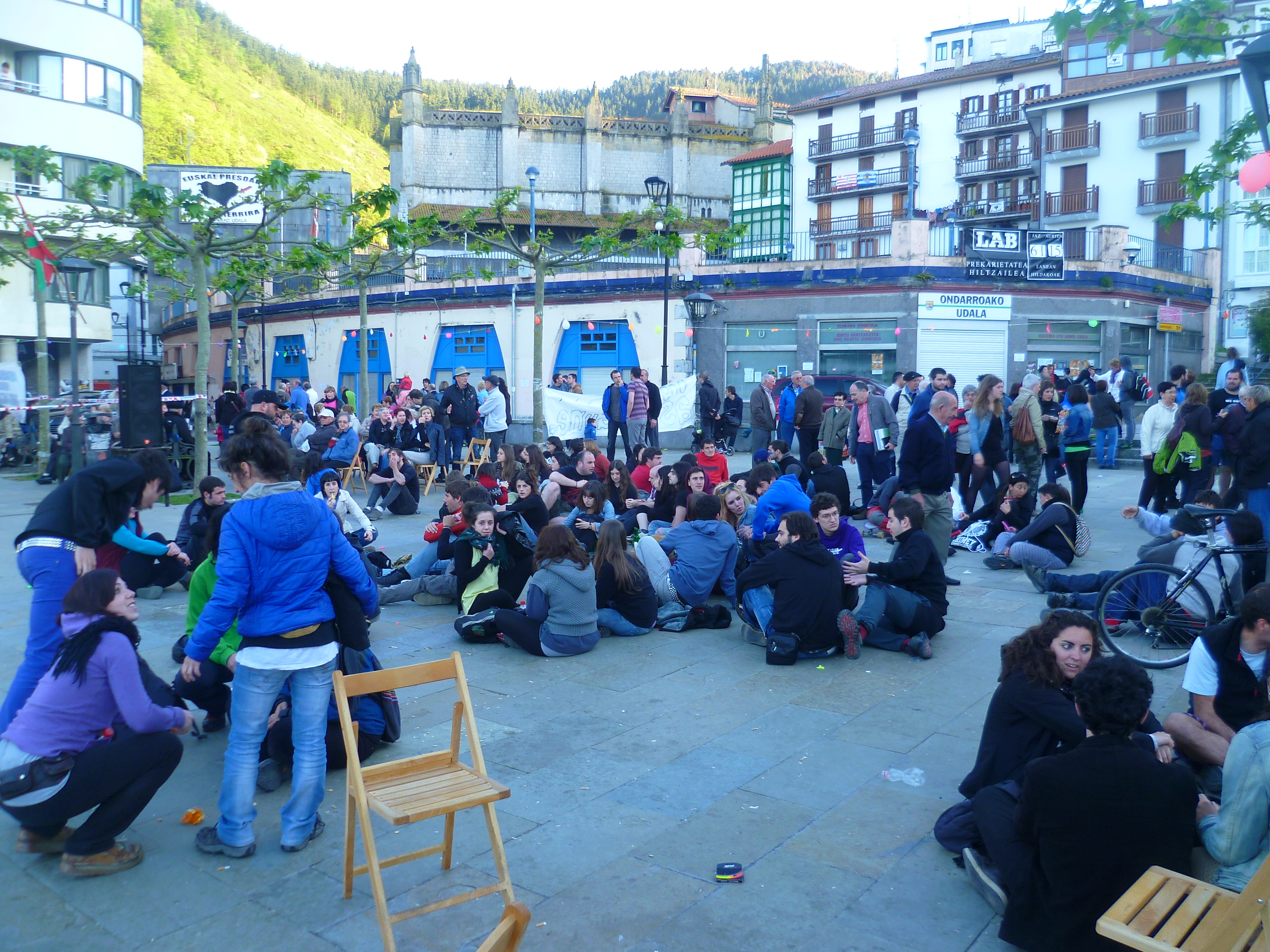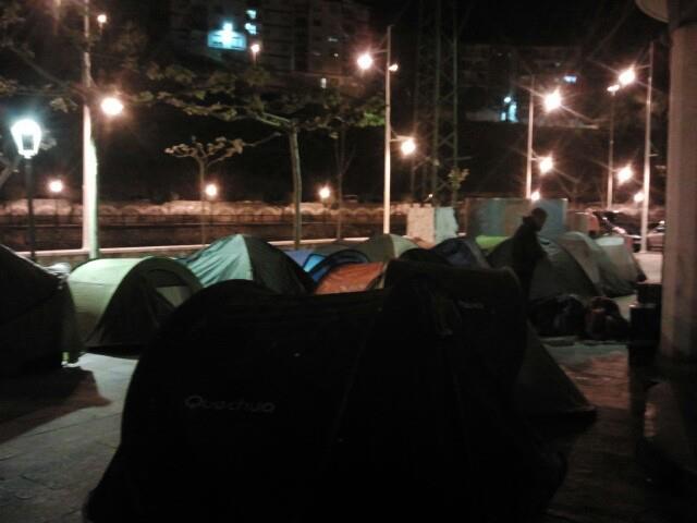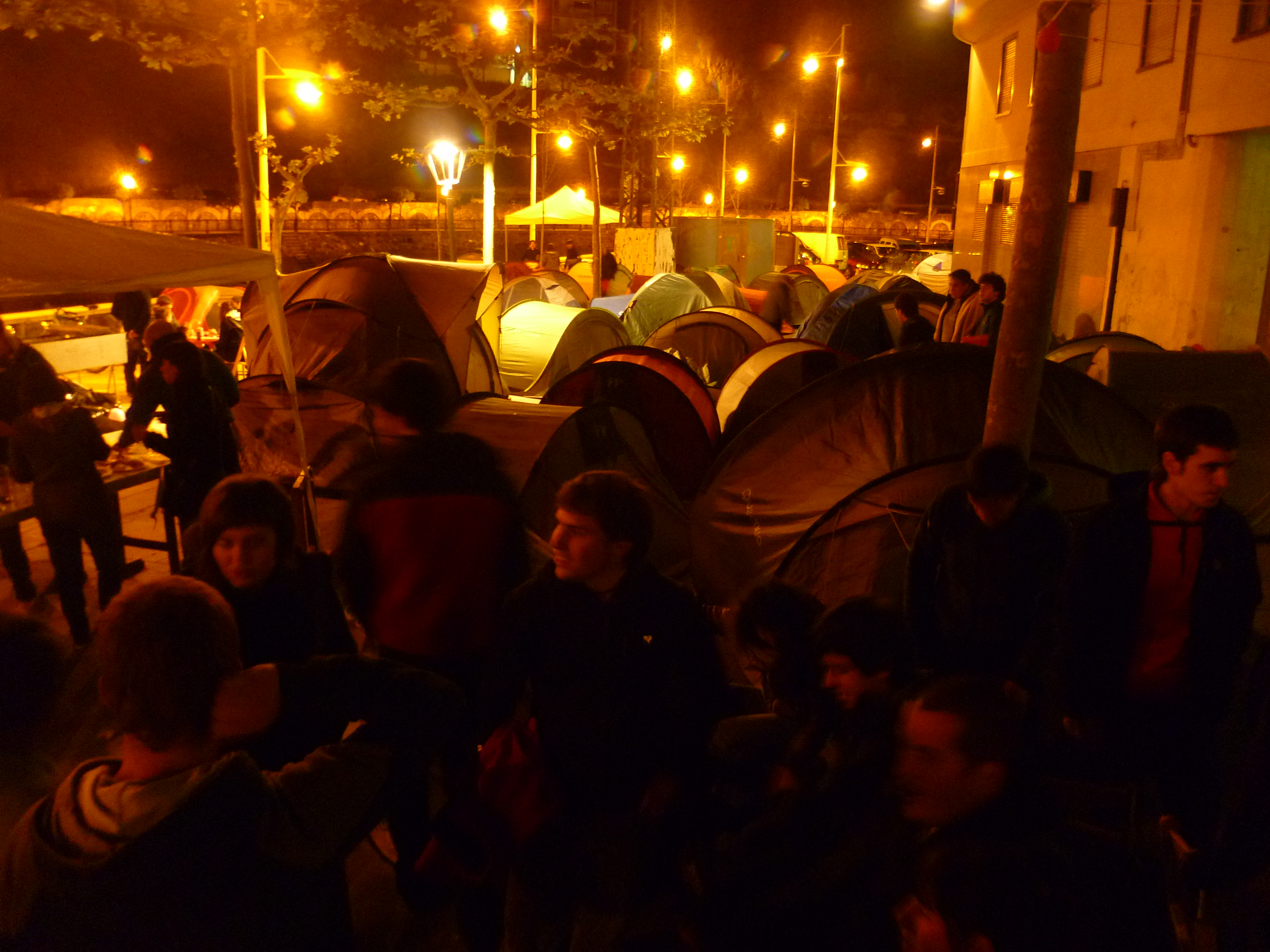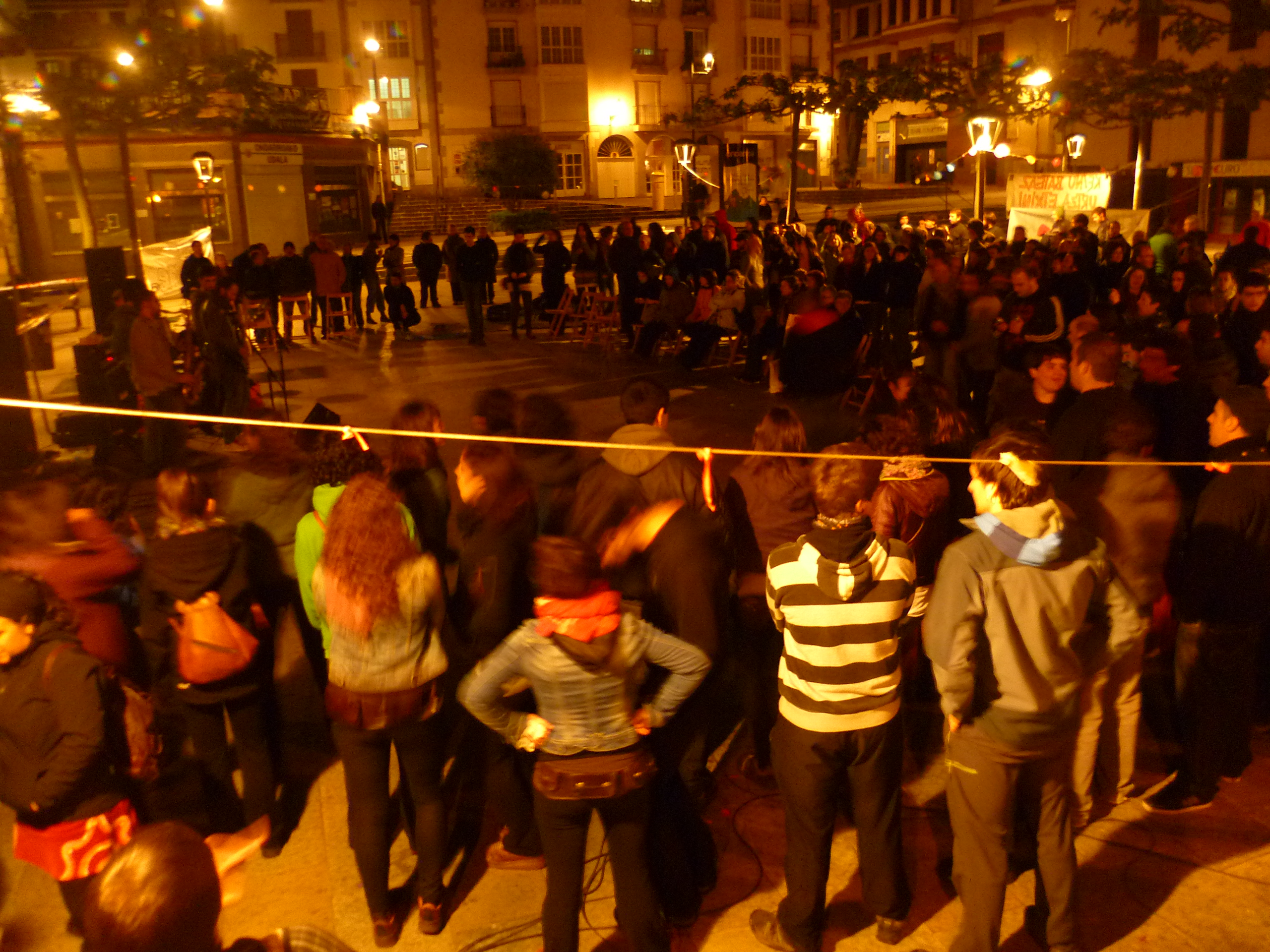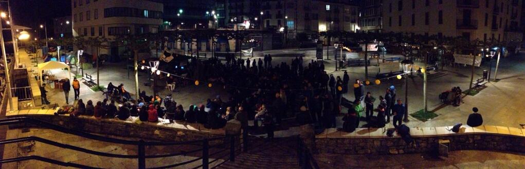 23:30 – Gabeko asanbladi inoizkoik handixena ixan da. Kanpotik etorritxako jente asko da Alamedan. Erakusketa aretu be zabaldu ein bir ixan da, jentik lo ein ahal ixateko. Iurretako kuartelea 20 furgona baino gehixa sartu ei diz. Atxiloketi gaur ixango dala emoten dau, eta horretxeatxik 20 pertsonako zaintza taldik ipiniko douz gabe guztin zubixan ingurun. Eta 5etan danok esnatzeko aginddu jaso dou. Badatoz, zain eta esna eukiko gatxue!