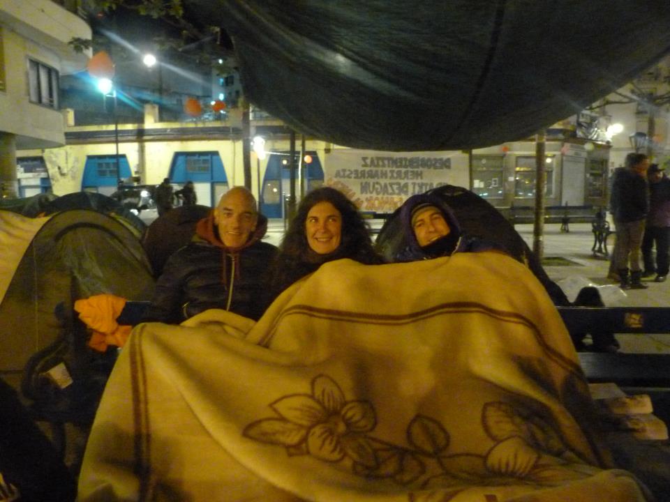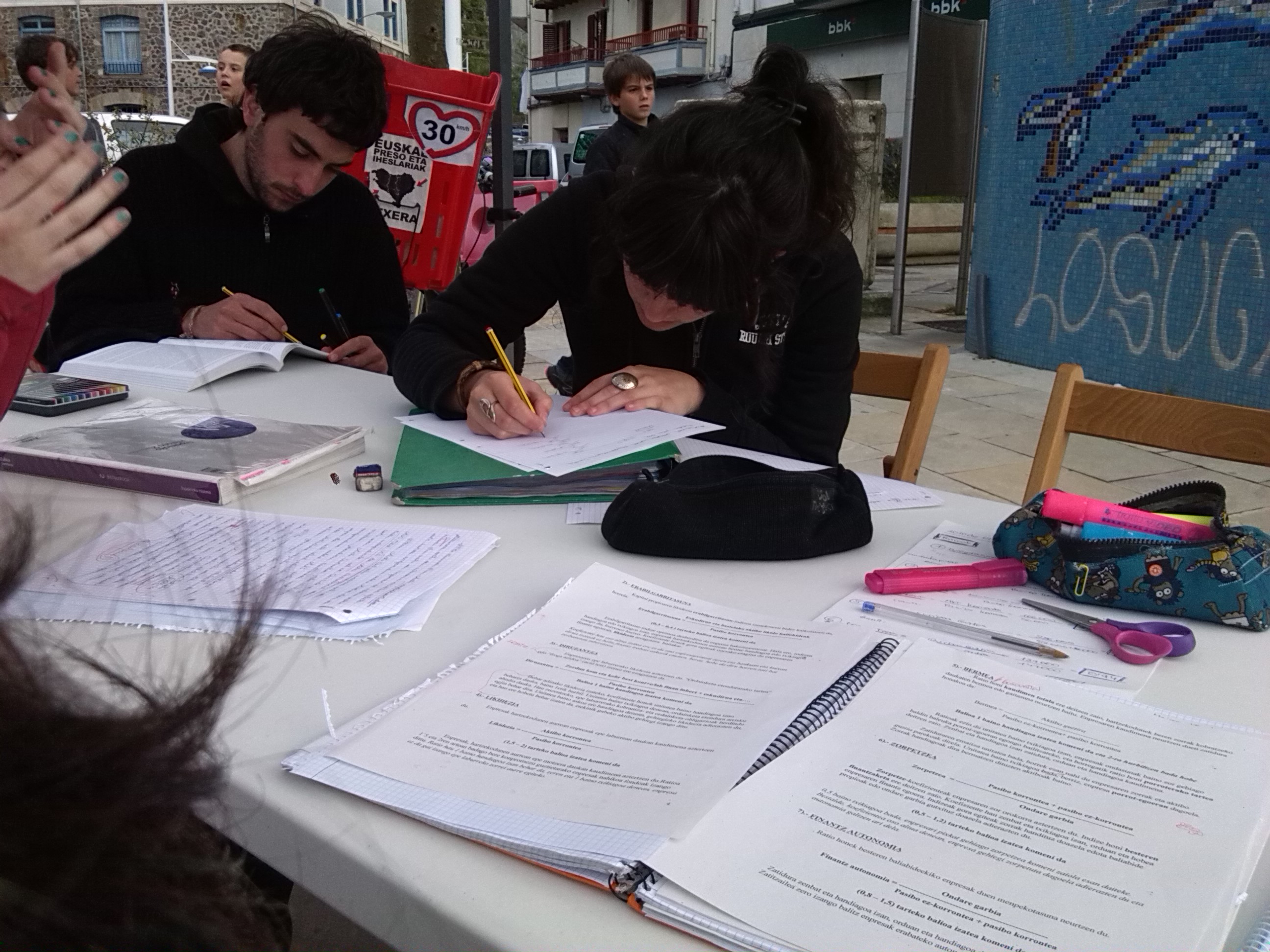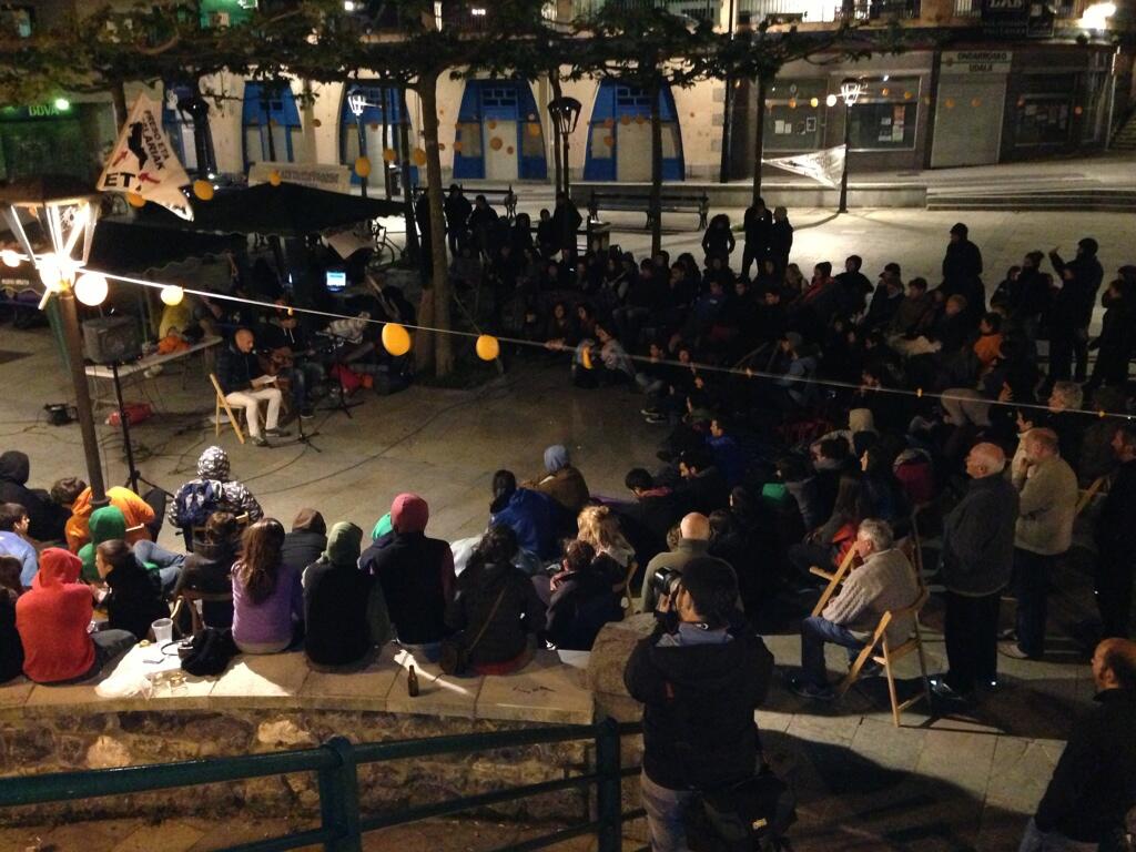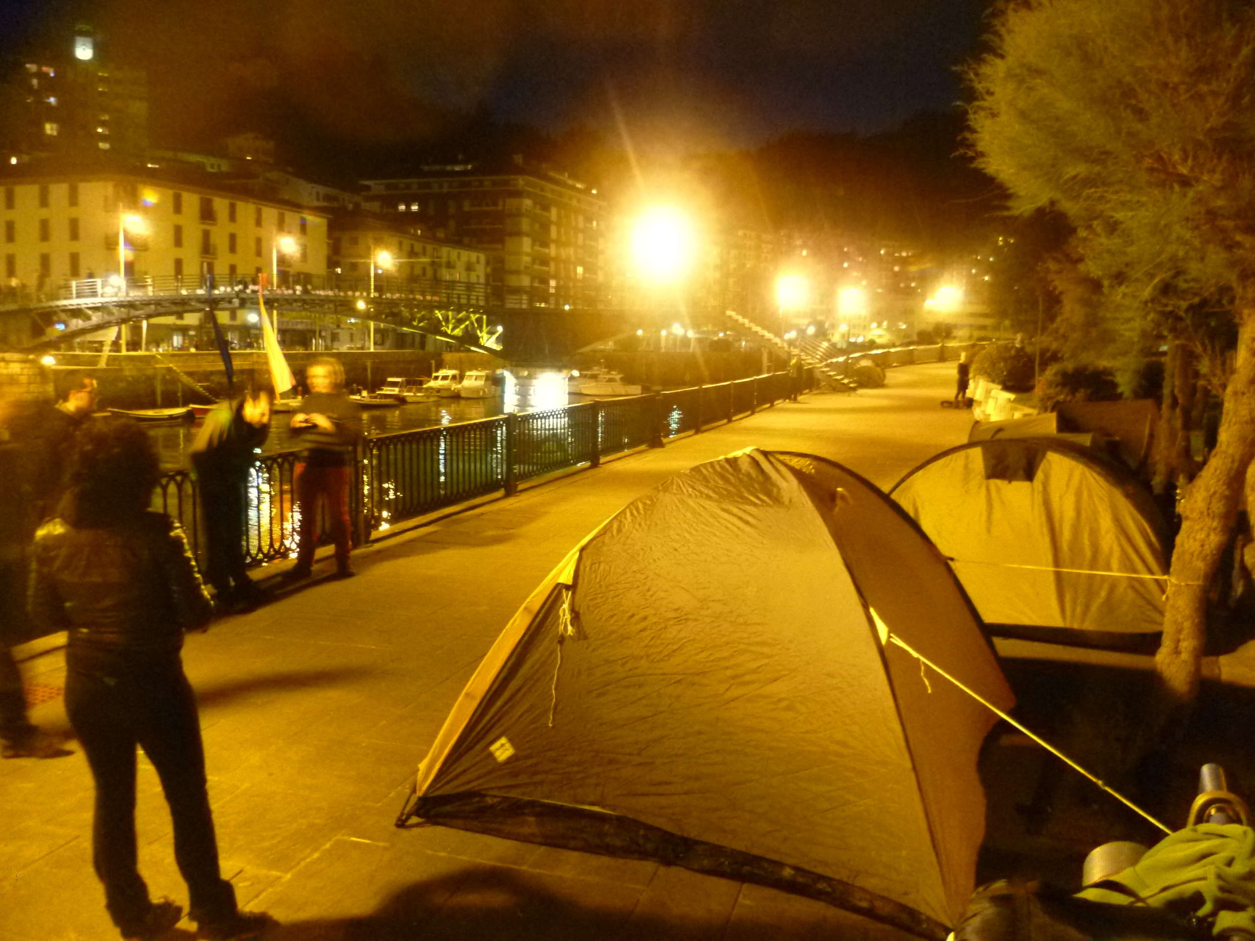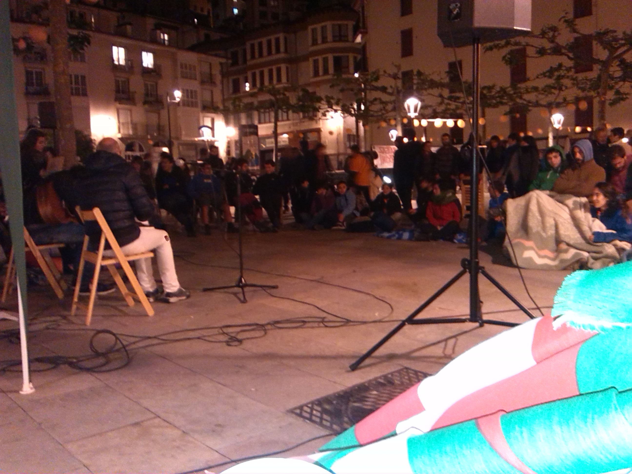 23:30 – Gabeko asanbladi inoizkoik handixena ixan da. Kanpotik etorritxako jente asko da Alamedan. Erakusketa aretu be zabaldu ein bir ixan da, jentik lo ein ahal ixateko. Iurretako kuartelea 20 furgona baino gehixa sartu ei diz. Atxiloketi gaur ixango dala emoten dau, eta horretxeatxik 20 pertsonako zaintza taldik ipiniko douz gabe guztin zubixan ingurun. Eta 5etan danok esnatzeko aginddu jaso dou. Badatoz, zain eta esna eukiko gatxue!