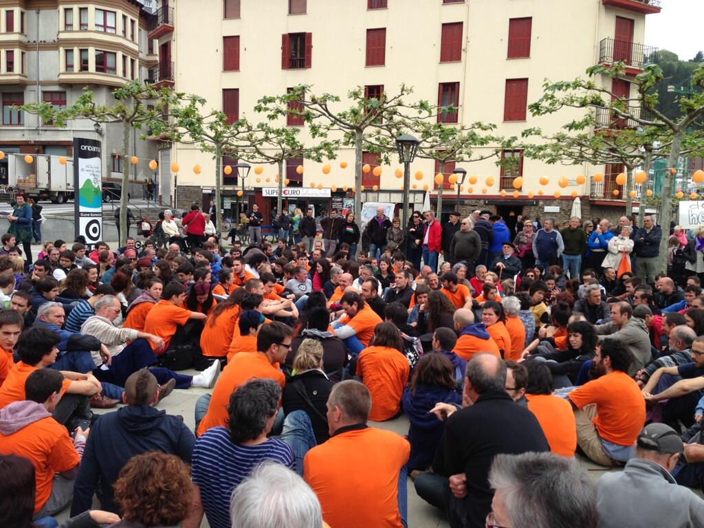 14:00 – 500 bat lagunek parte hartu dabe manifestazinoin. Urtza heritxarrak babestute jun de. Eta ertzainak, bueltaka.