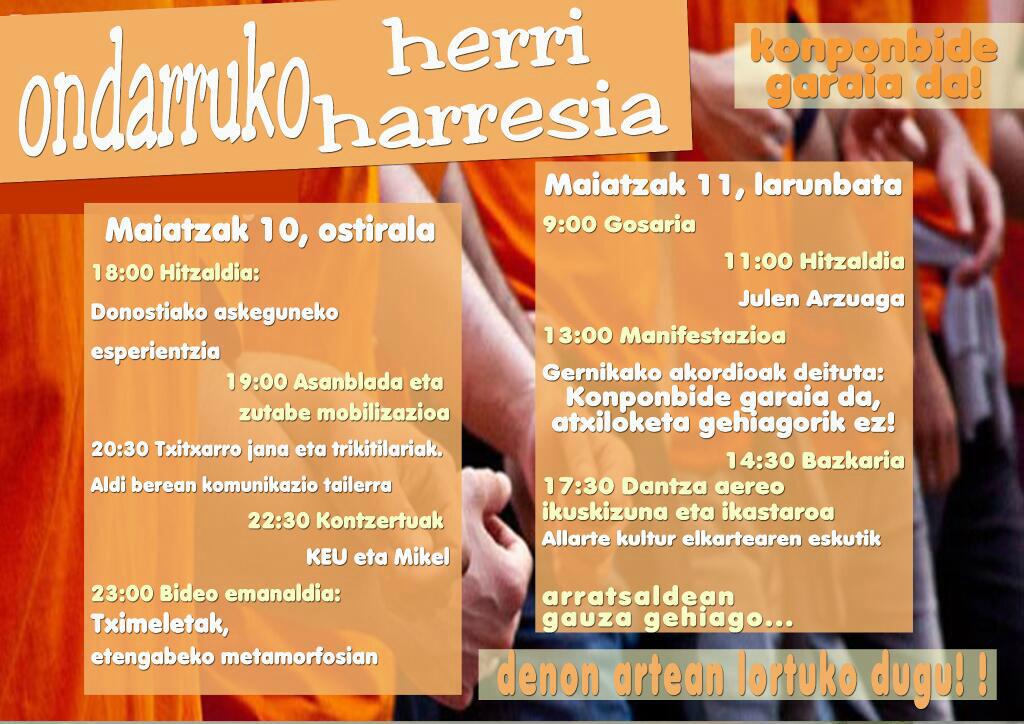 *Egoera hau ikusita, larunbatean (maiatzak 11), Gernikako Akordioaren Ondarroako sinatzaileok manifestazio ixila deituko dugu 12:30etan alamedatik hasita, “Konponbide garaia da, atxiloketa gehiagorik ez!”